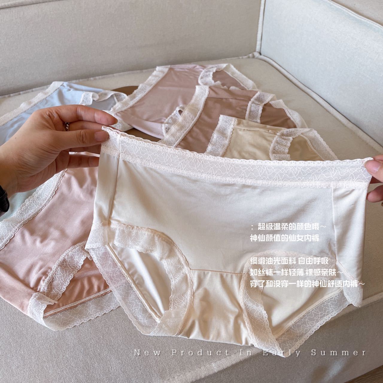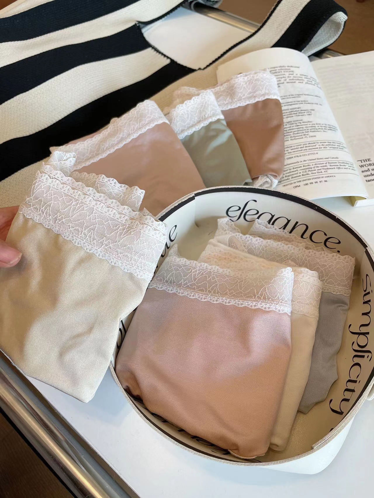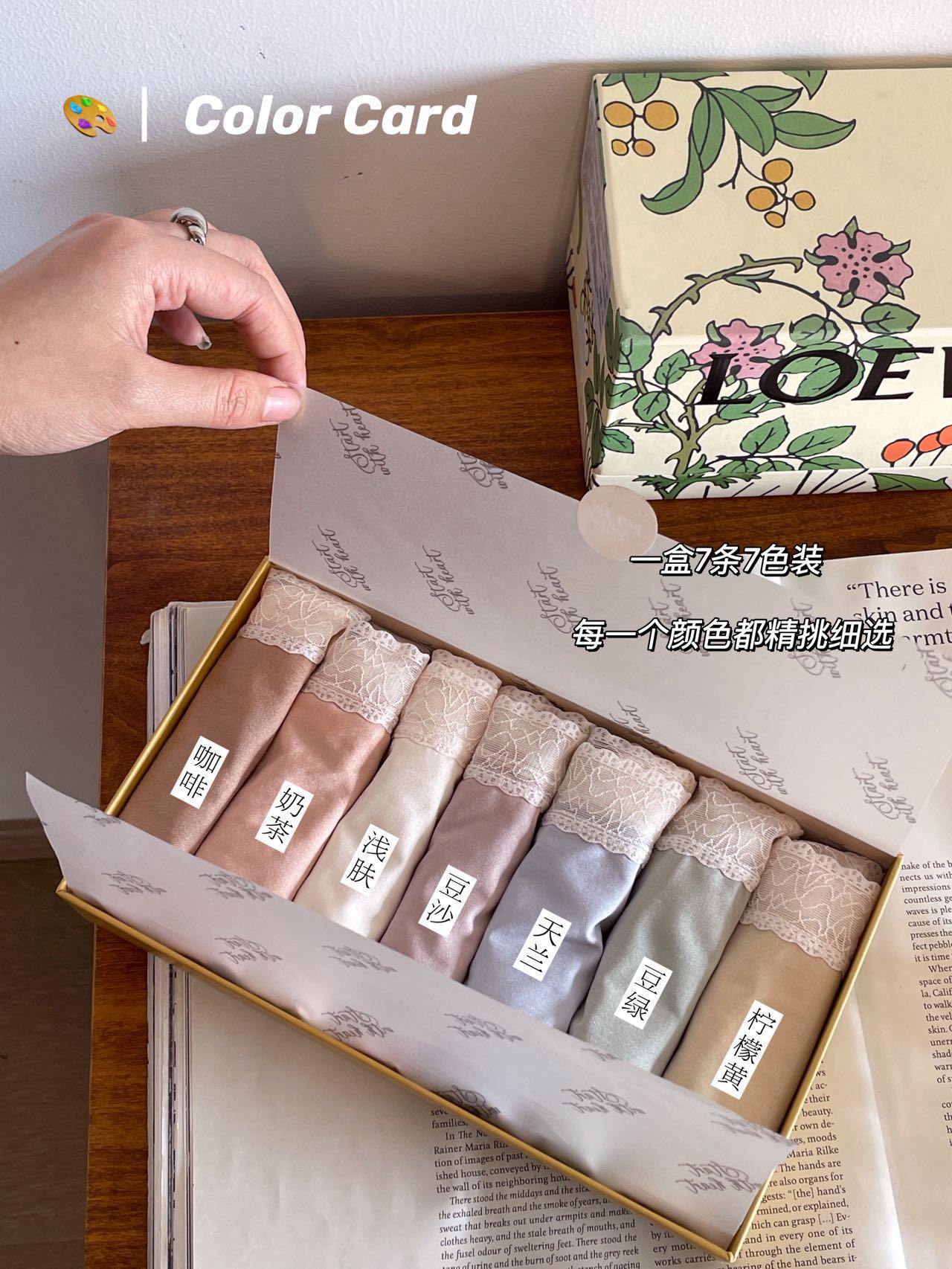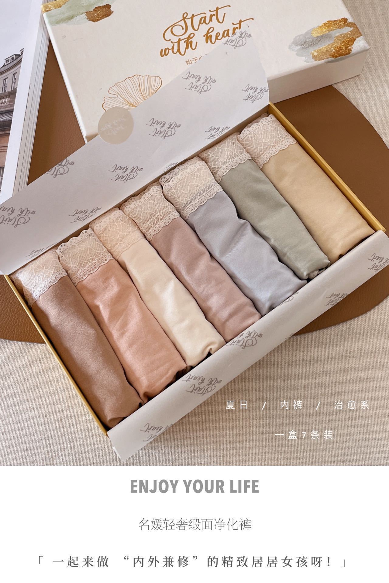 【7条礼盒装】黛唯梵新款名媛轻奢缎面净化抗JUN底档内裤女 蕾丝边中腰礼盒装 女士三角裤