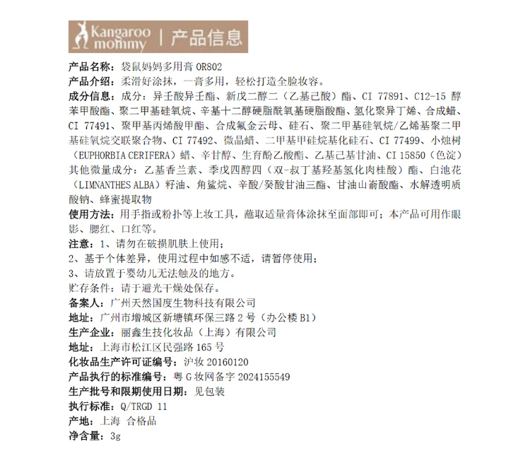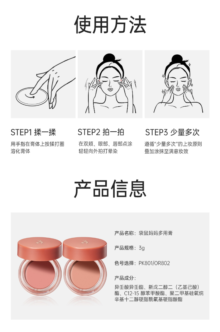 【多用膏】口红腮红眼影三合一小红罐 持妆易推开 多用膏(3g)