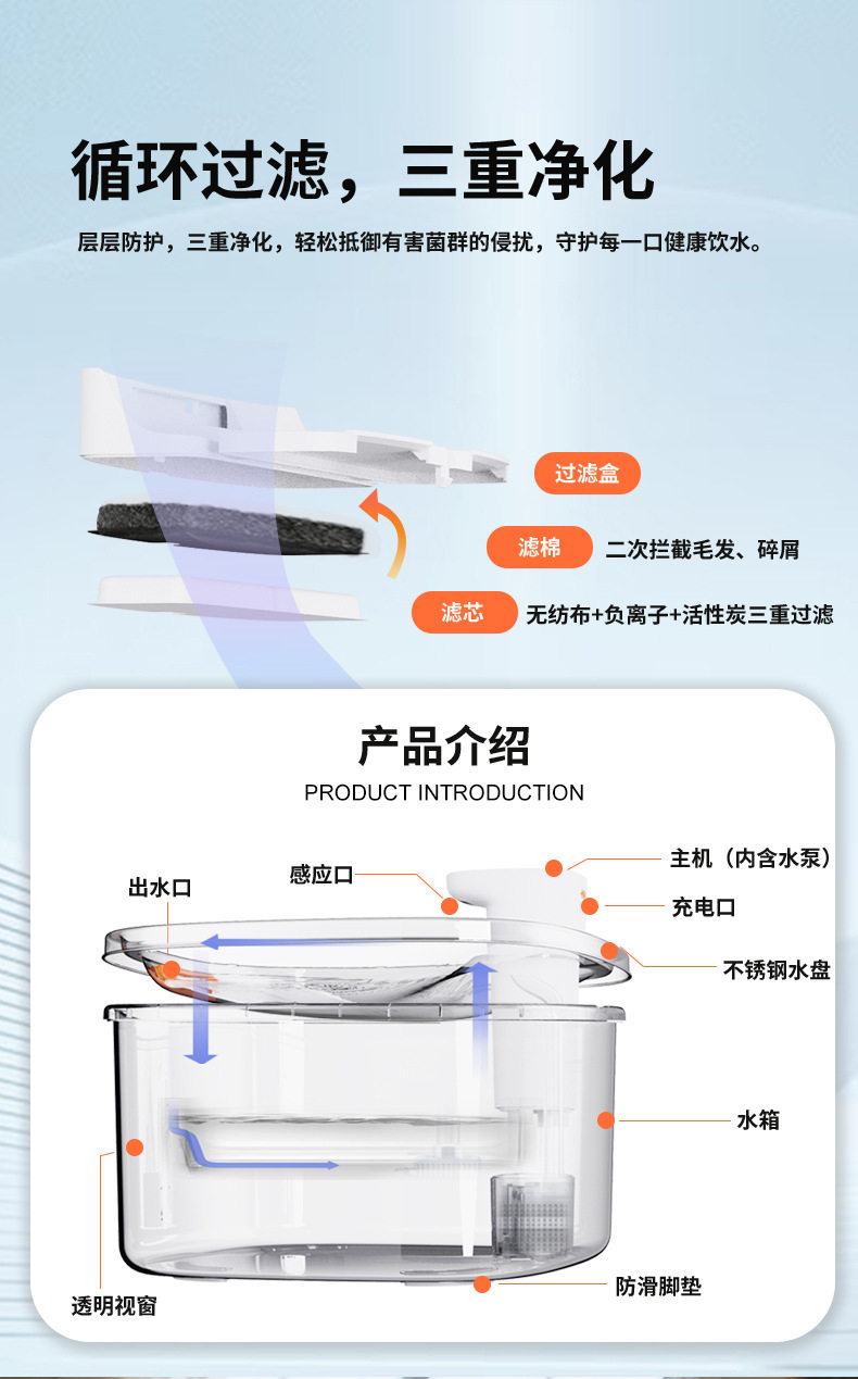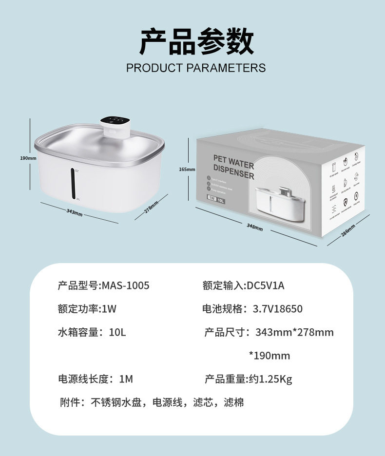 10L宠物智能饮水机喝水碗循环过滤不锈钢水盘防打翻猫咪饮水器