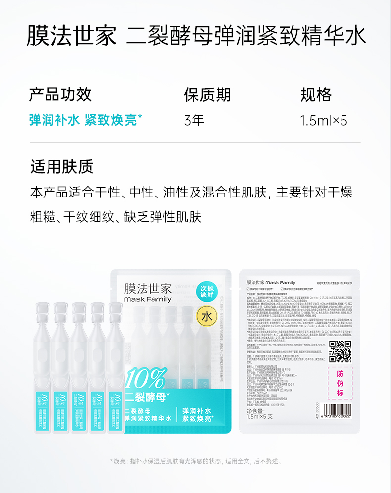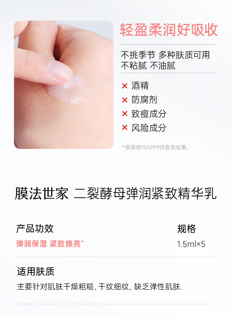 【便携锁鲜】膜法世家二裂酵母弹润紧致次抛水乳20支