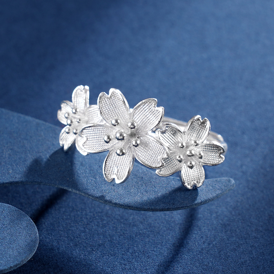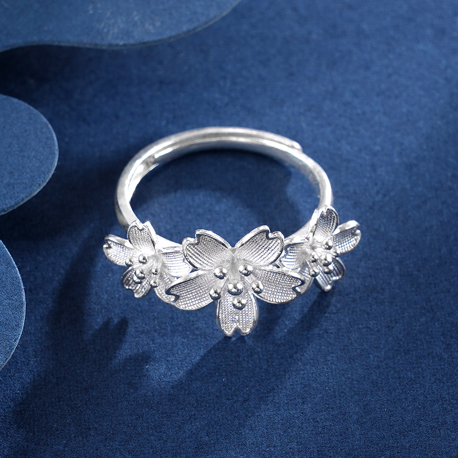 【寓意】:巧妙运用银花丝工艺,编织出立体花朵造型戒指。繁花锦簇,于指间翩然盛放,清雅又高贵。