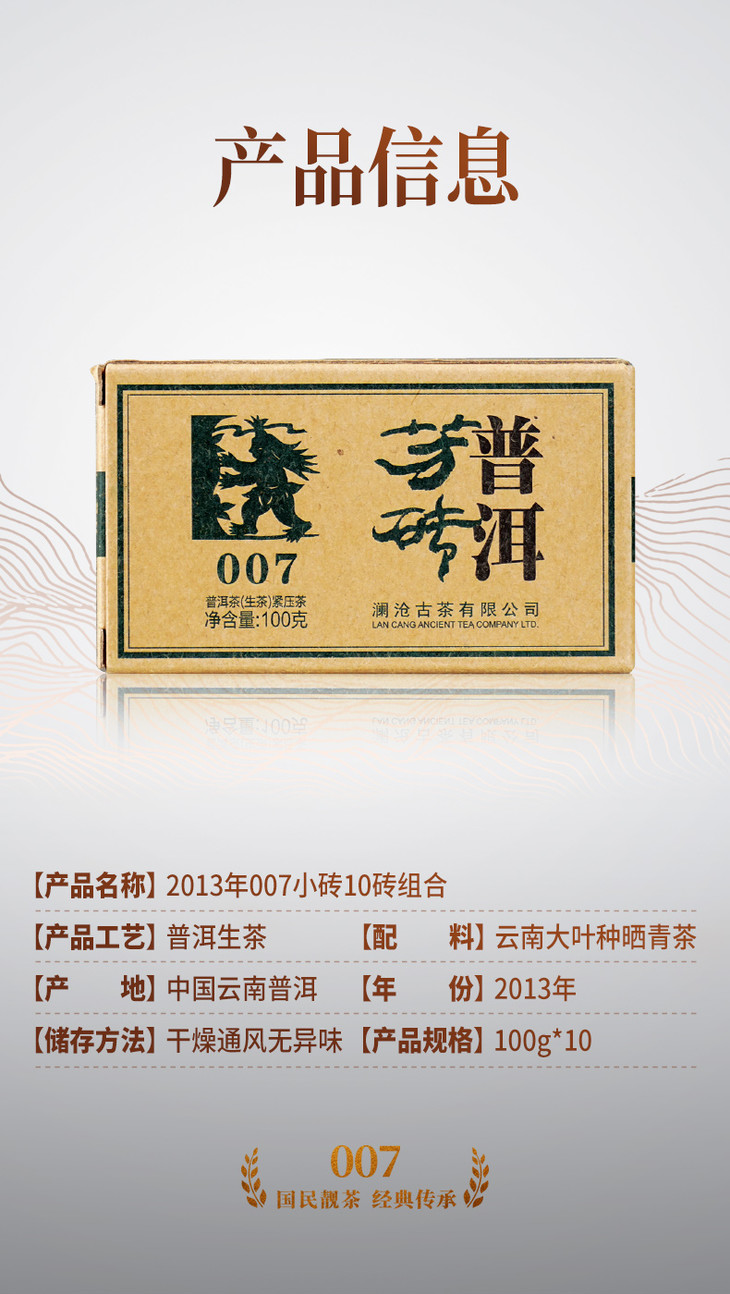 澜沧古茶2013年007小砖普洱茶生茶云南古树老树5年老茶叶100g*10