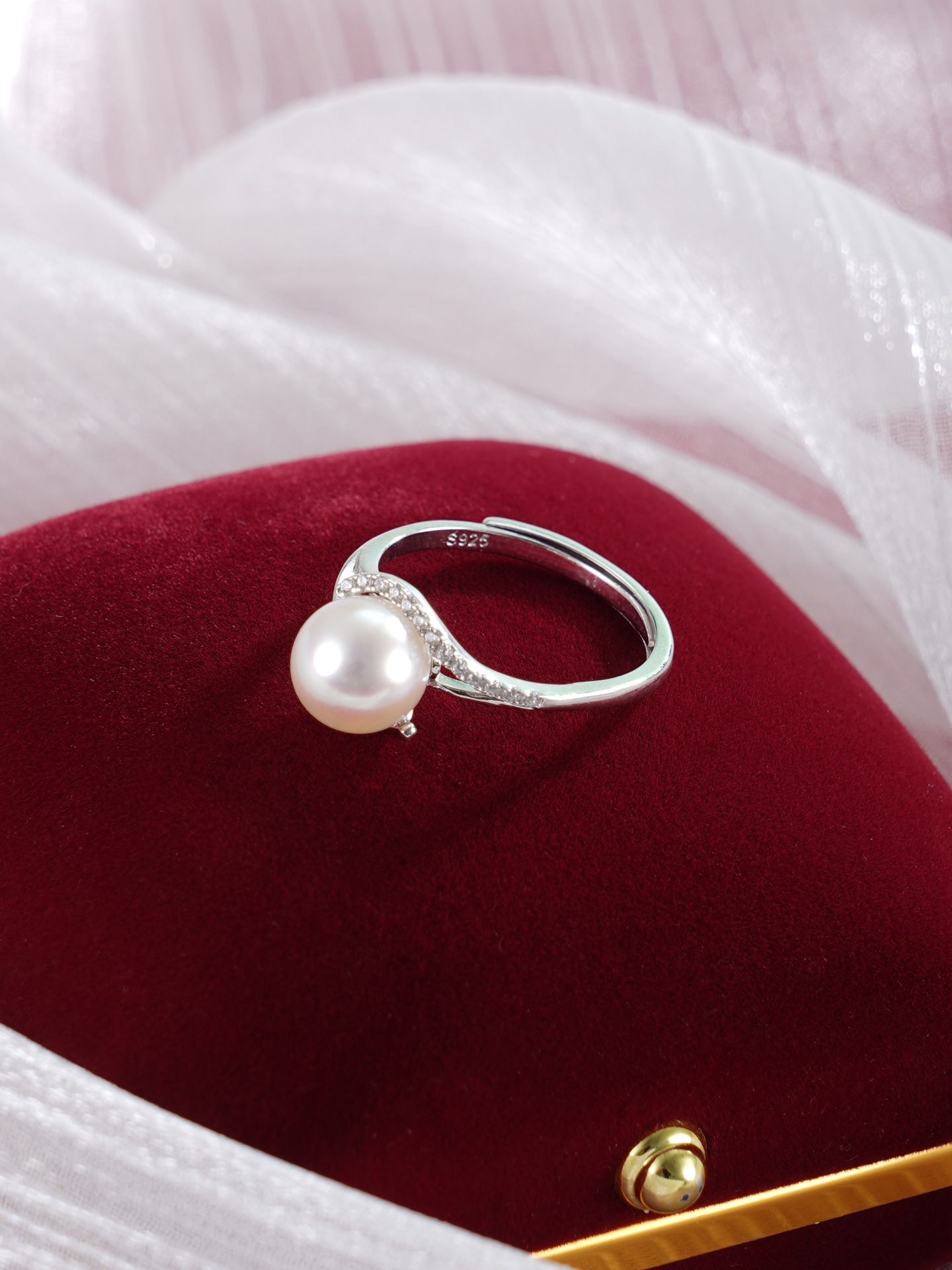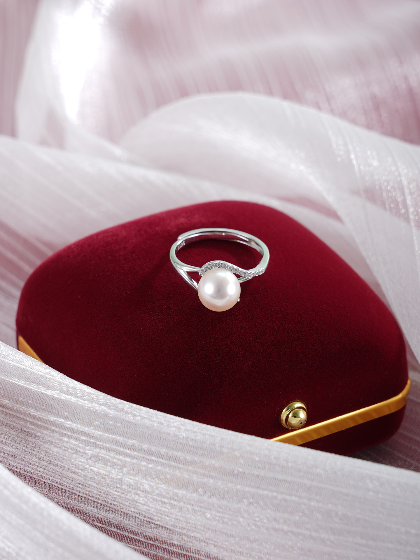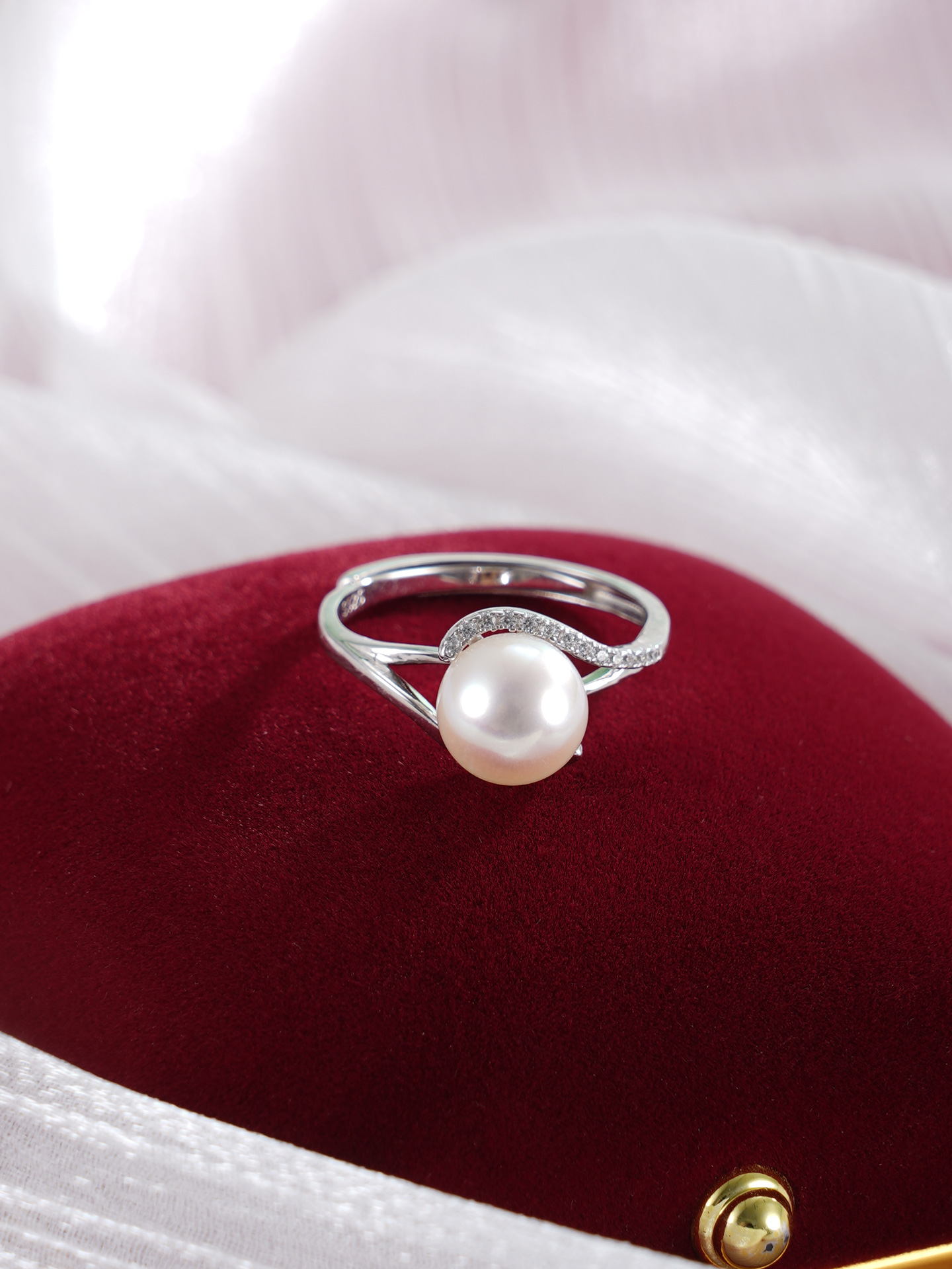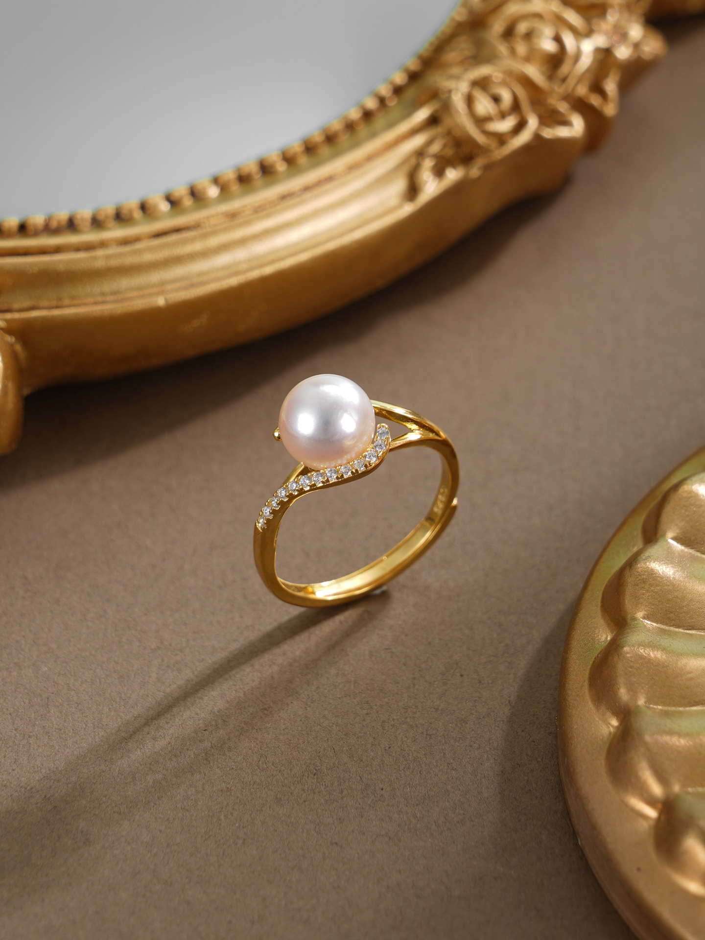 子佩集【霞光之舞】银S925珍珠戒指【HJYJZ006】8mm珠镀金缠绕交织2512