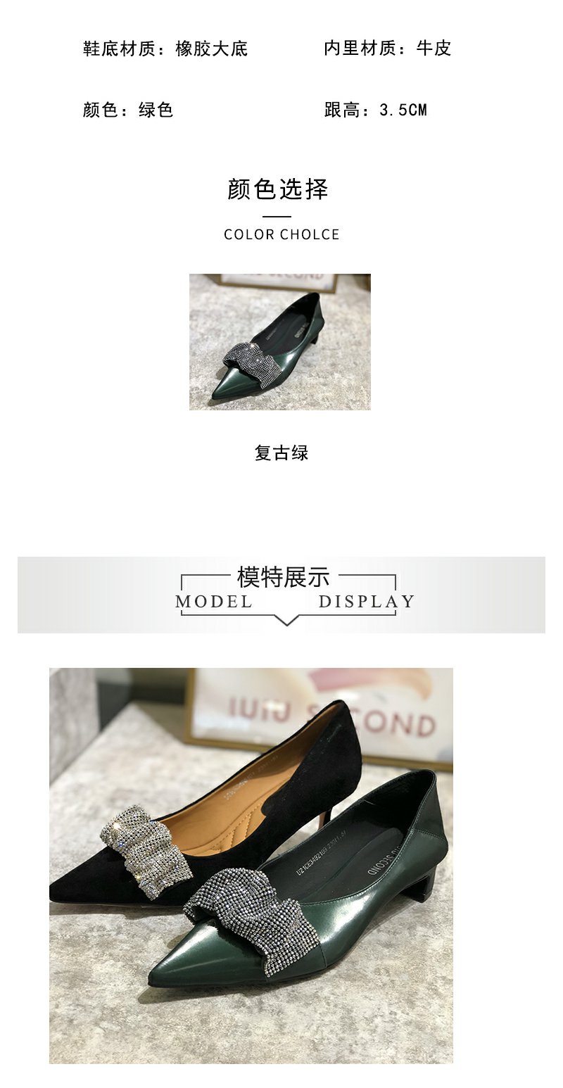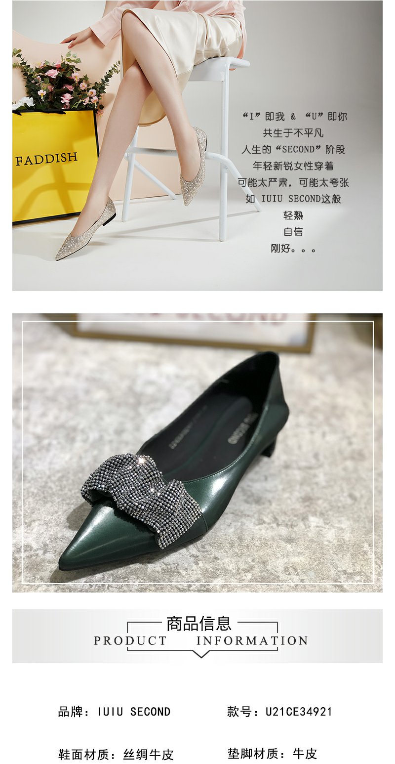 IUIU SECOND气质宴会鞋浅口时装水钻2021新秋低跟单鞋