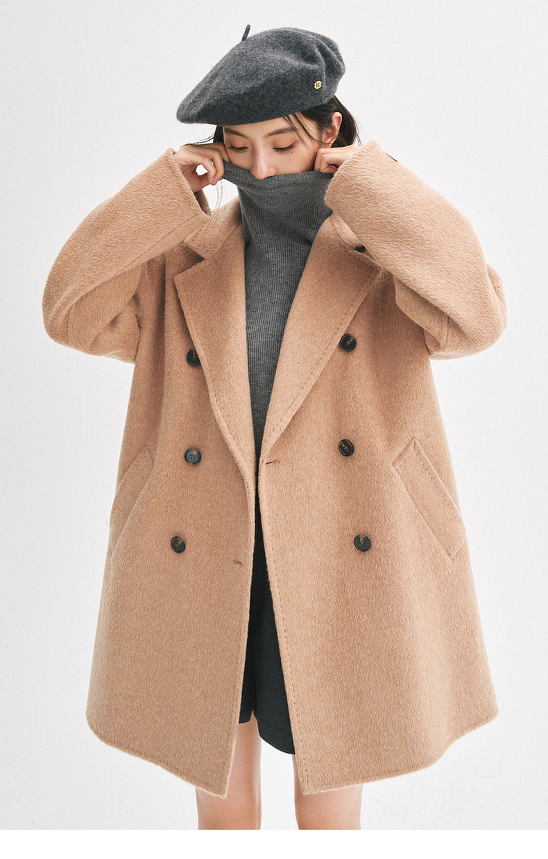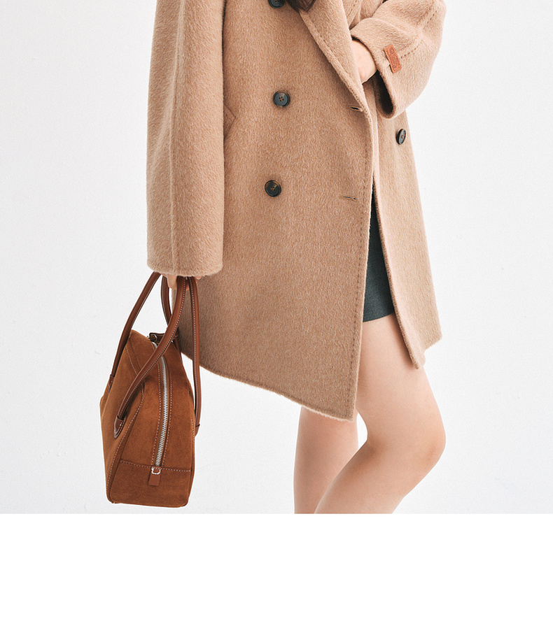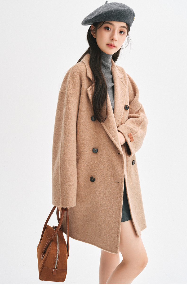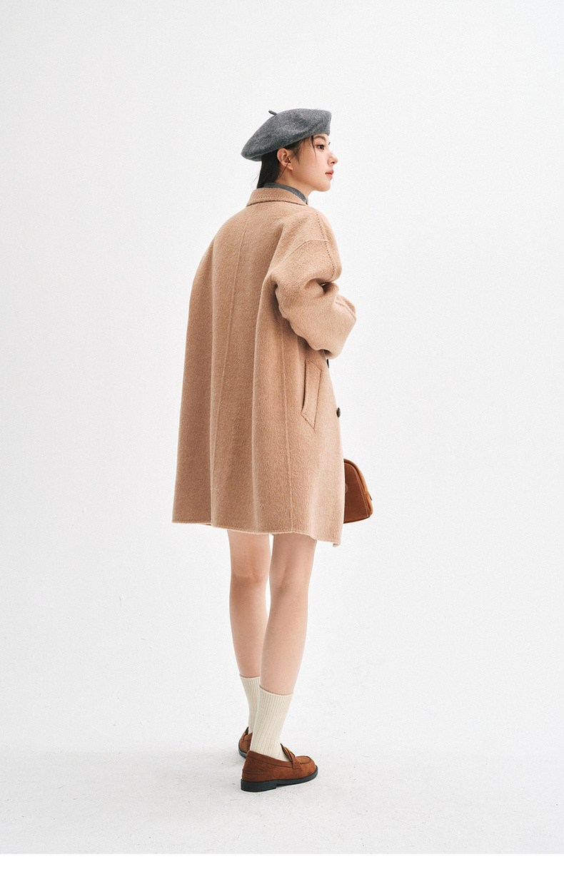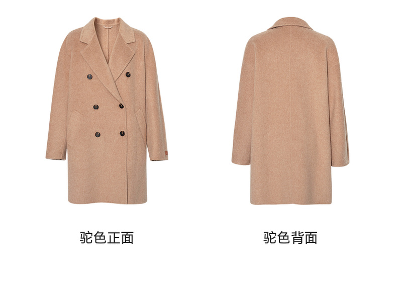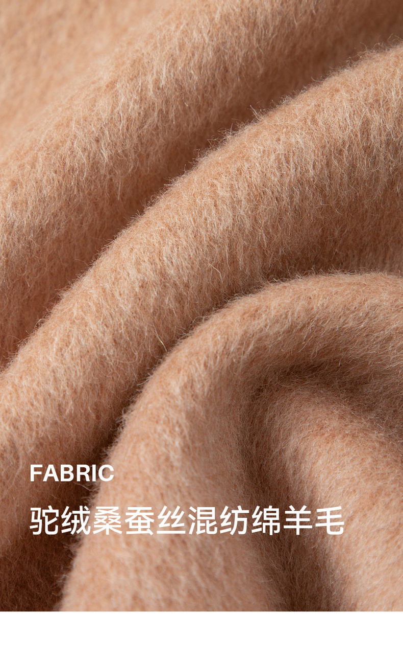 【严选】诗凡黎桑蚕丝骆驼绒毛呢外套2024秋冬新款学院风设计感呢子大衣7F9370031