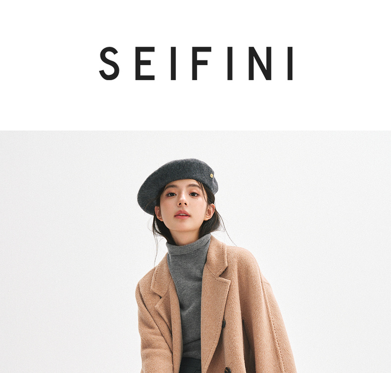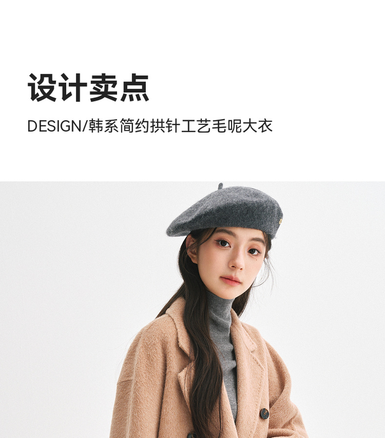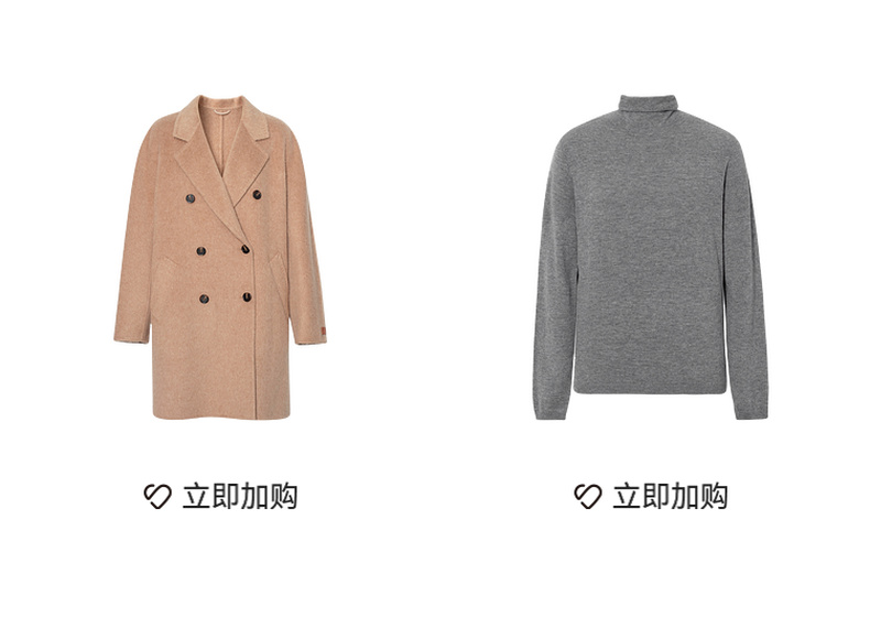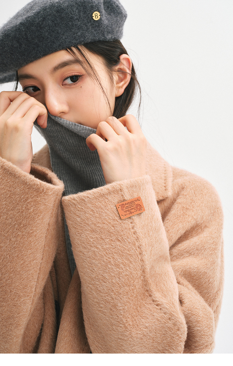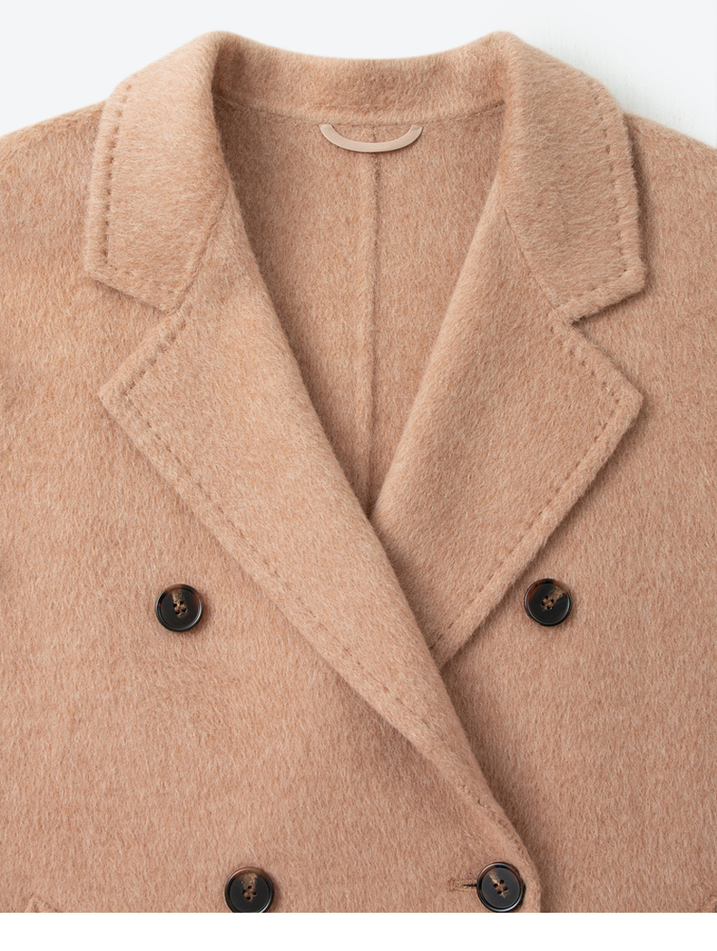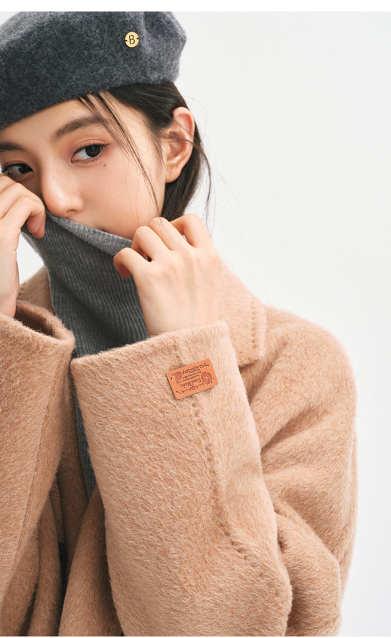 【严选】诗凡黎桑蚕丝骆驼绒毛呢外套2024秋冬新款学院风设计感呢子大衣7F9370031