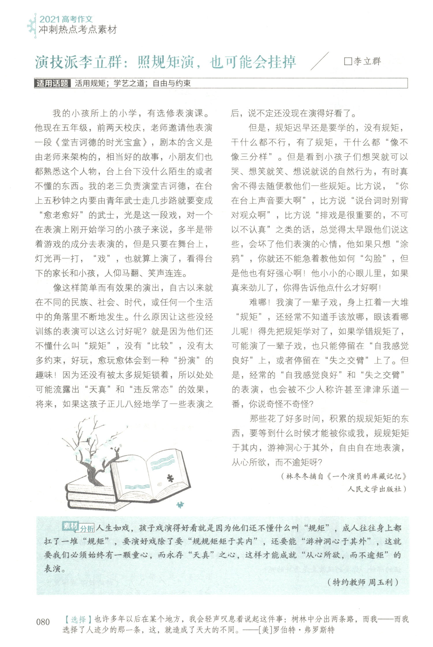 《意林2021高考作文冲刺热点考点素材》由意林集团屡创预测奇迹的作文团队邀请有命题、阅卷经验的老师联合打造,连续多年畅销,老师、考生认可,是高考作文的提分秘籍!