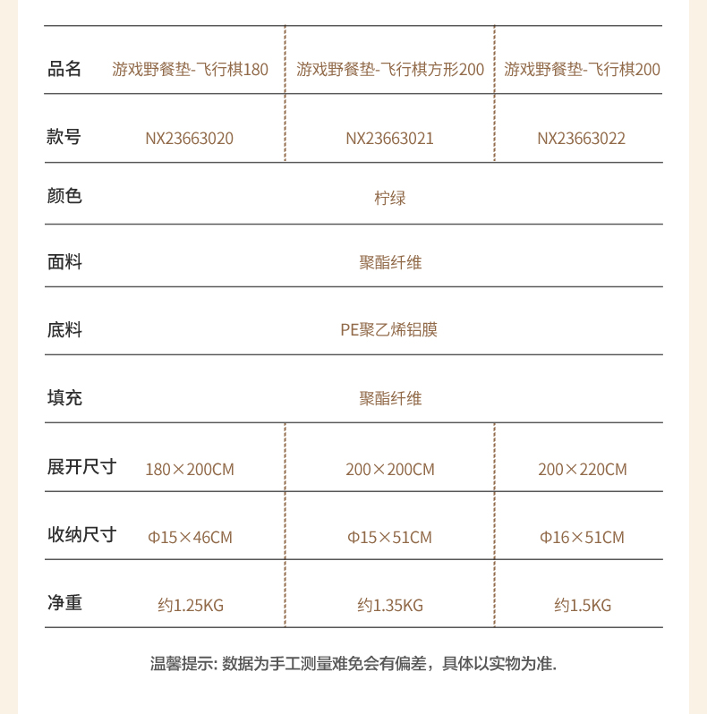 【牧高笛暖霞超声波游戏野餐垫-飞行棋】180*200cm 遇水不吸收 擦后迅速干燥 环保无异味