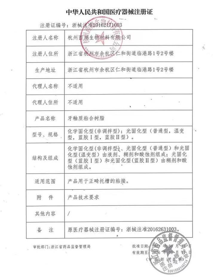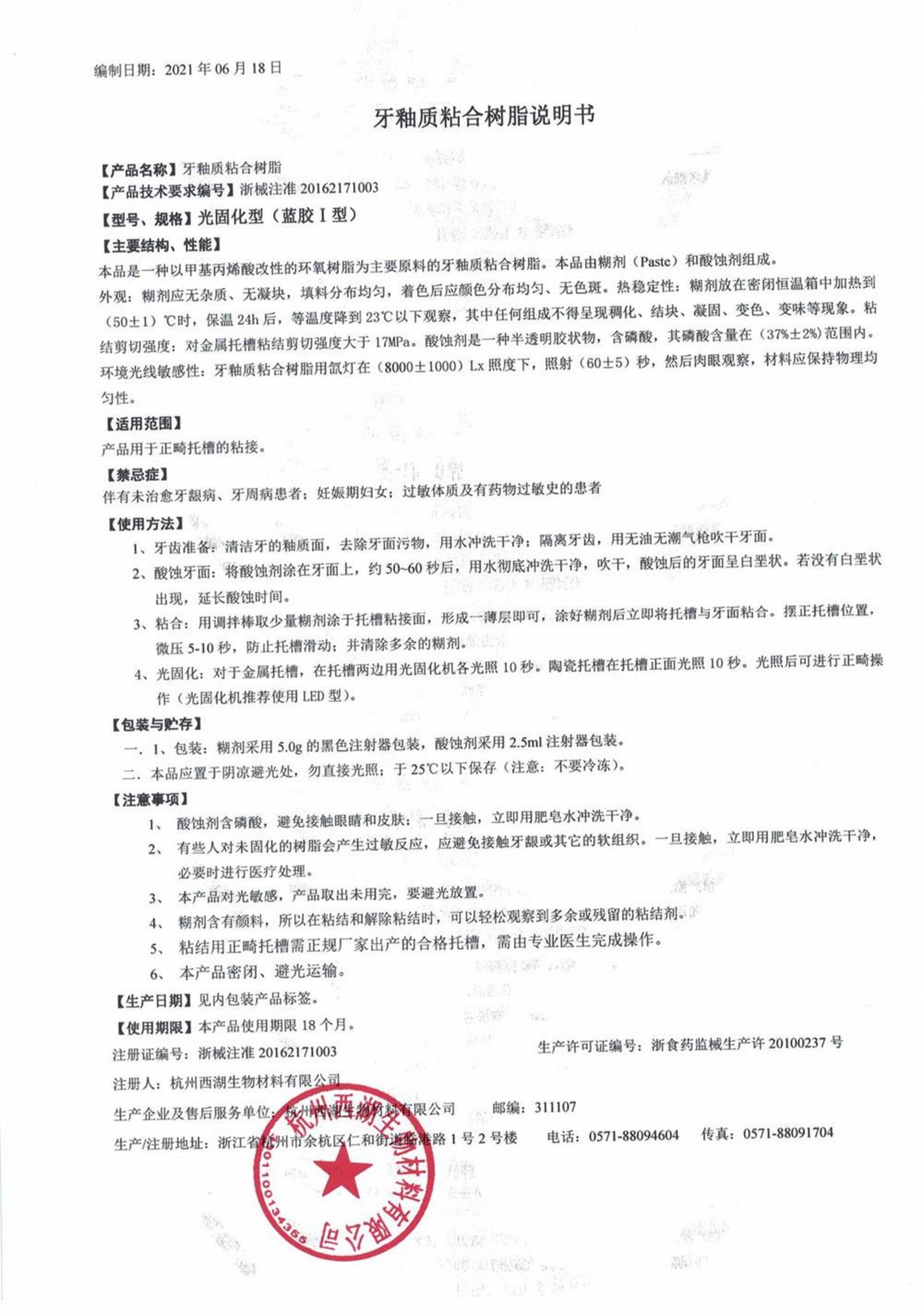 牙釉质粘合树脂(西湖巴尔 牙釉质粘合树脂 光固化型 蓝胶Ⅰ型)