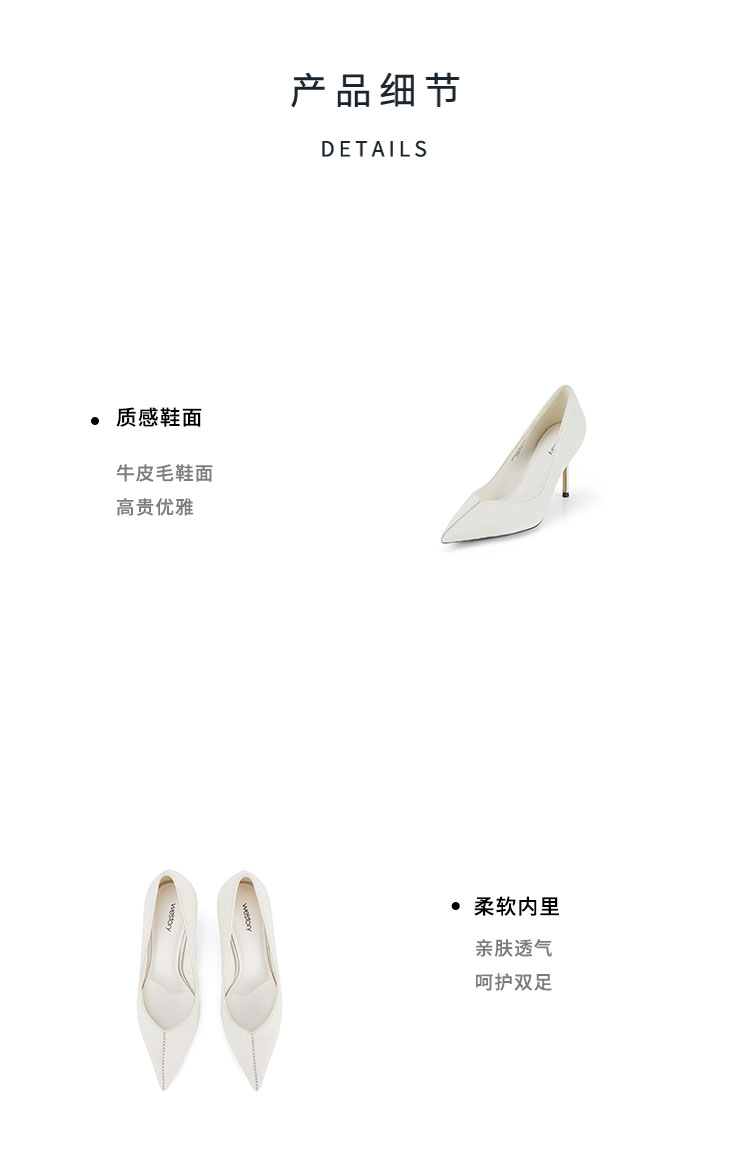 Westory2025年春季尖头高跟胎牛毛通勤百搭浅口单鞋宴会鞋W25AE58191