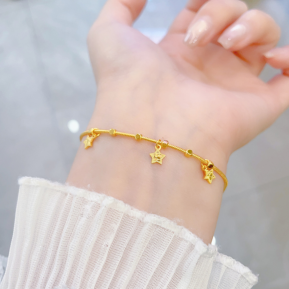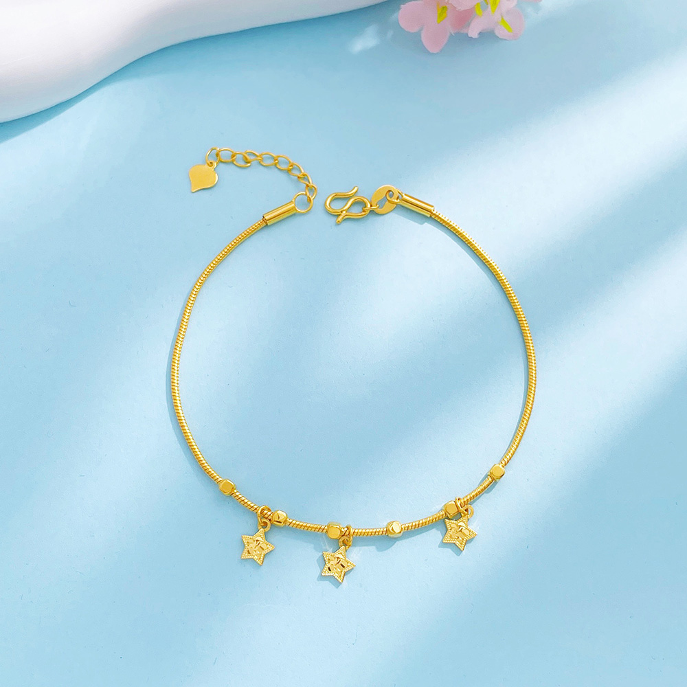【限时7.5折】【定价黄金】足金999 #碎碎冰 #为你摘星 5G黄金空心碎碎冰星星吊饰蹦迪珠蛇骨调节手链(AG5GSL00285)(预售产品下单后不退款不退货不换货不补差价)