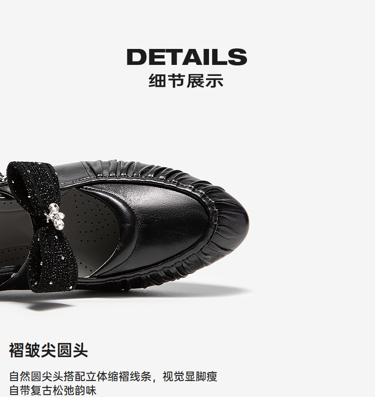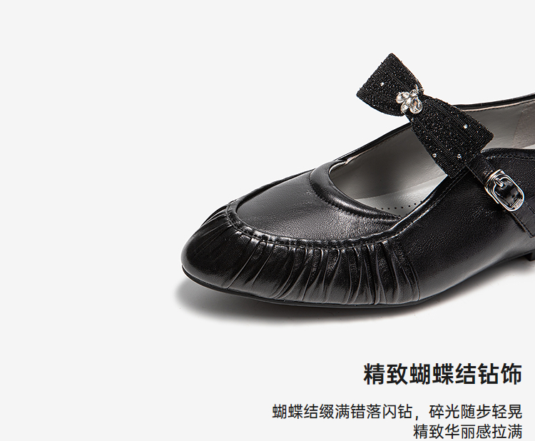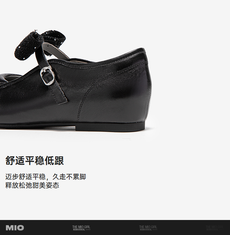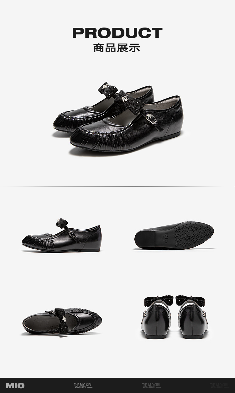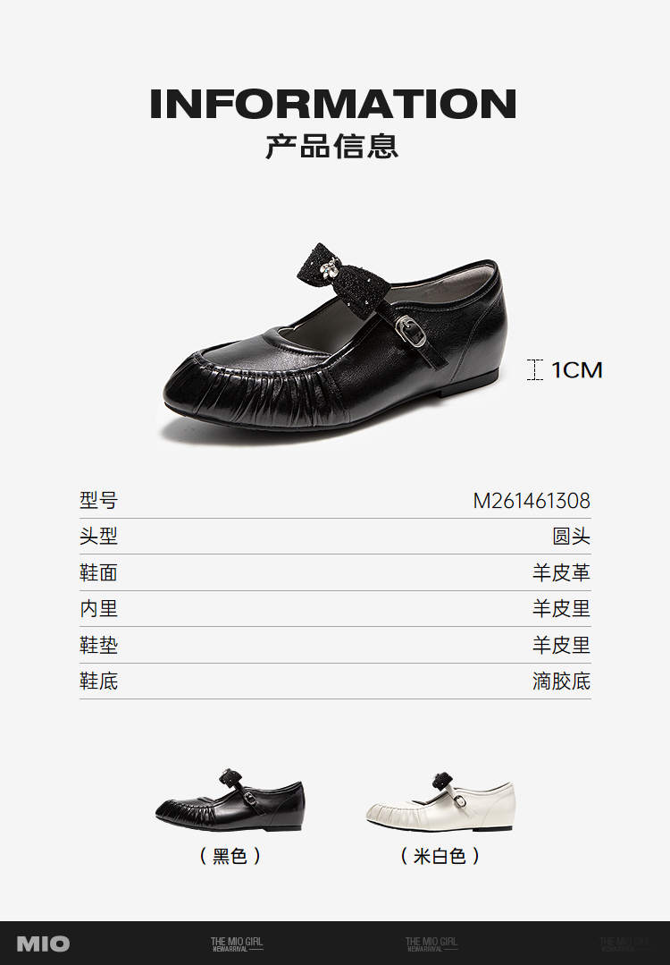 MIO米奥女鞋2026春季新款蝴蝶结一字带玛丽珍圆头褶皱单鞋羊皮革M261461308