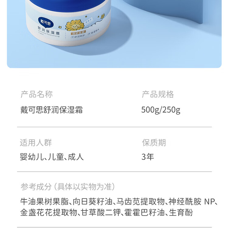 戴可思大满罐舒润保湿霜大白罐250g QG