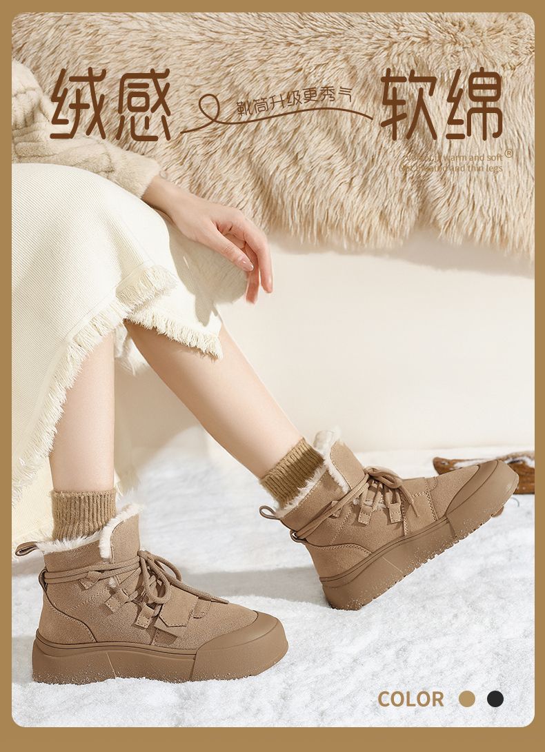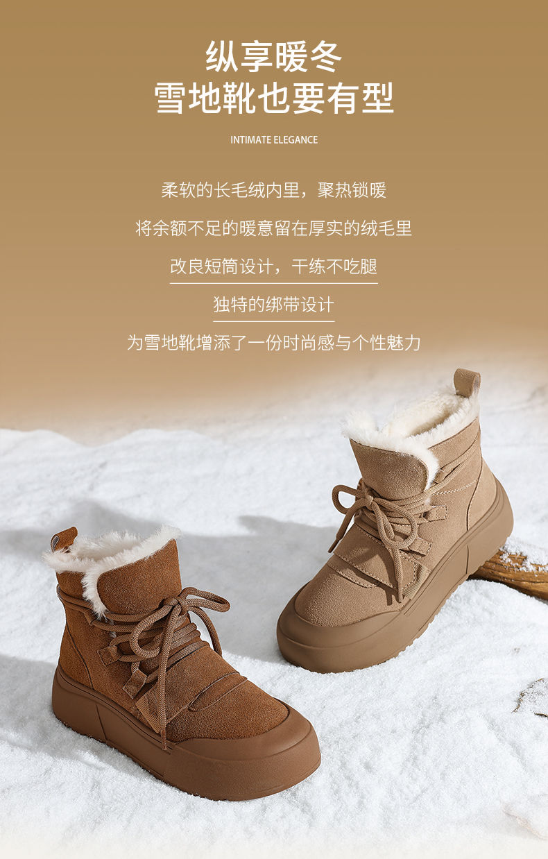 ZHR则则加绒保暖雪地靴防水防寒女鞋2024冬季新款ins百搭短筒棉鞋