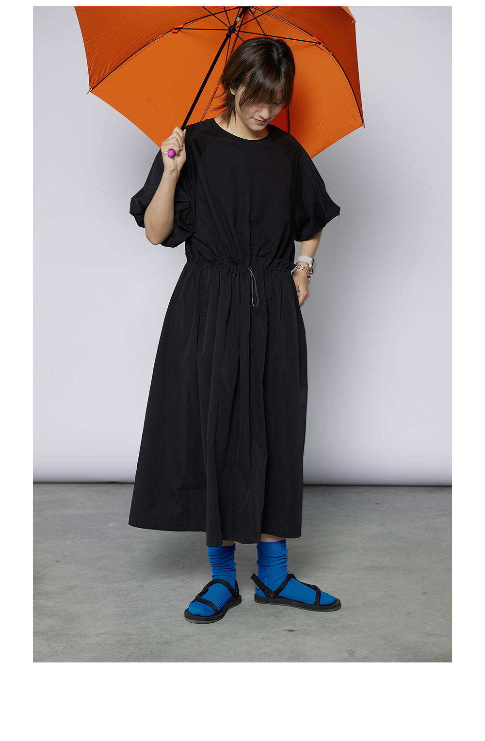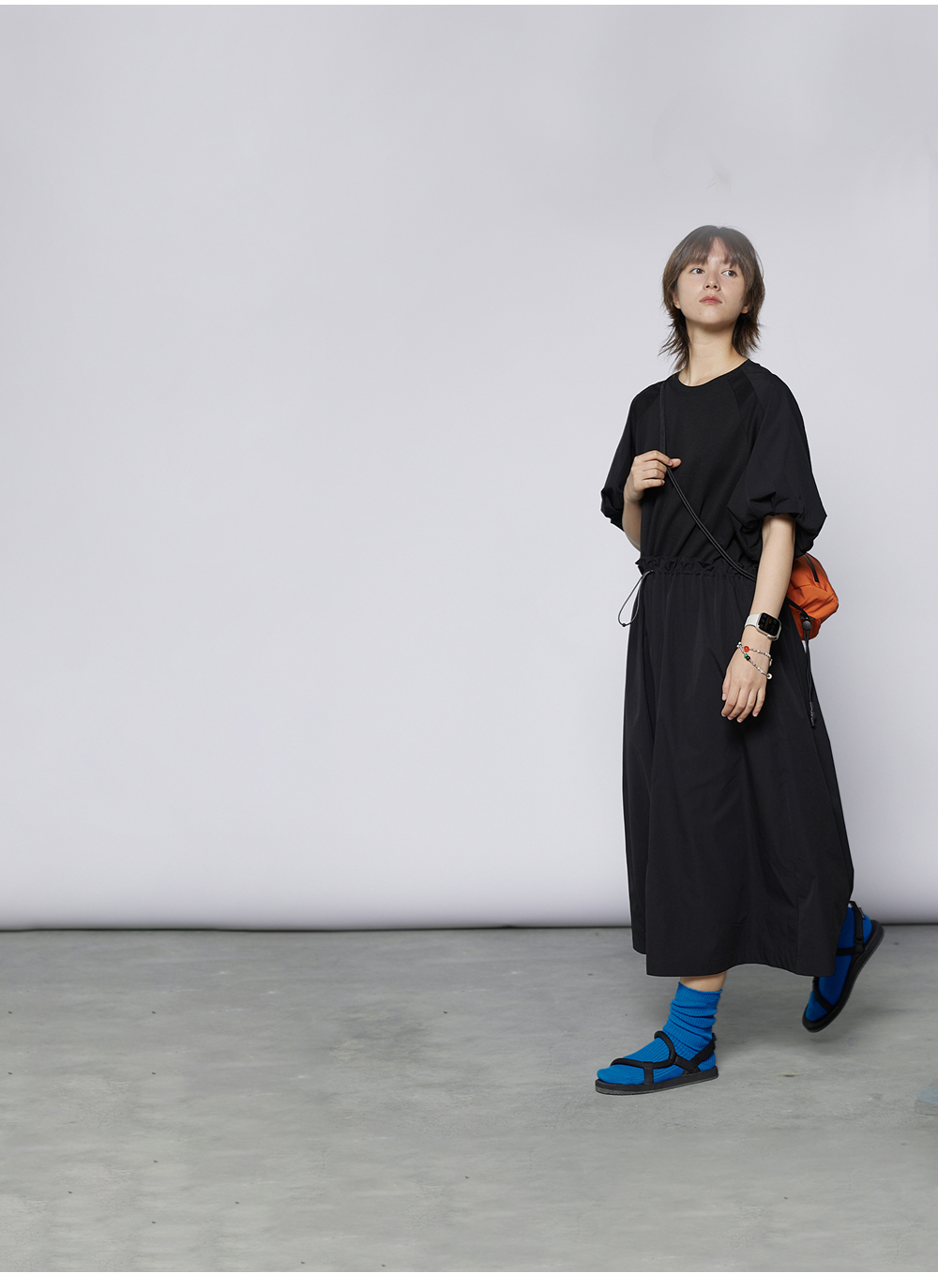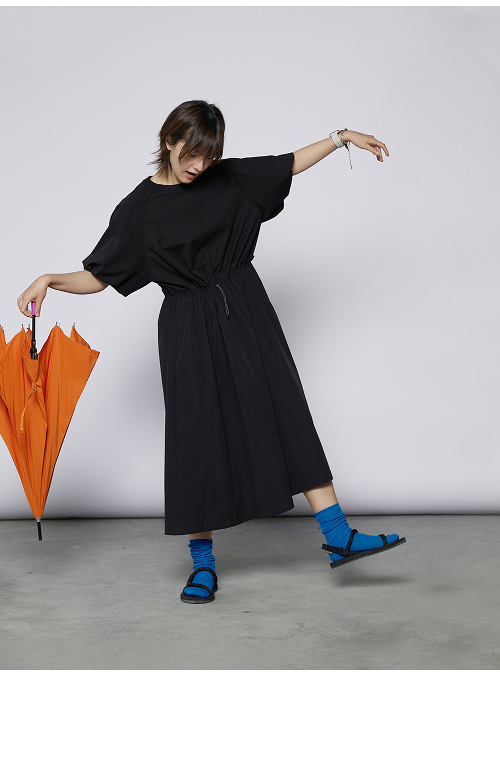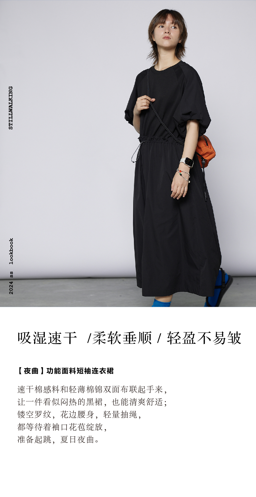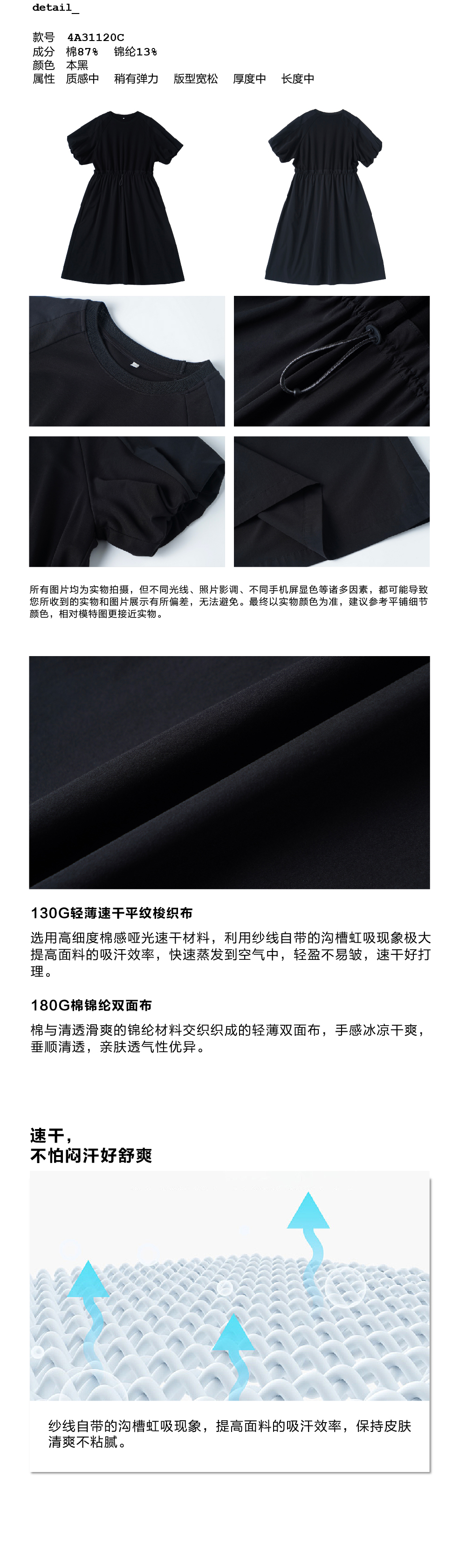 步履不停/4A31120C/速干吸汗轻薄黑色短袖连衣裙A字长裙