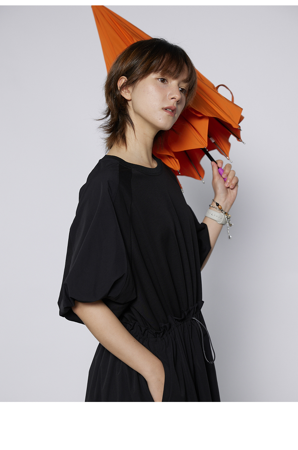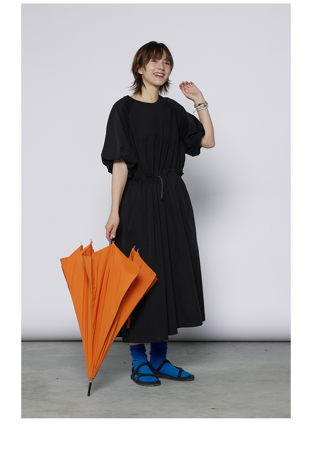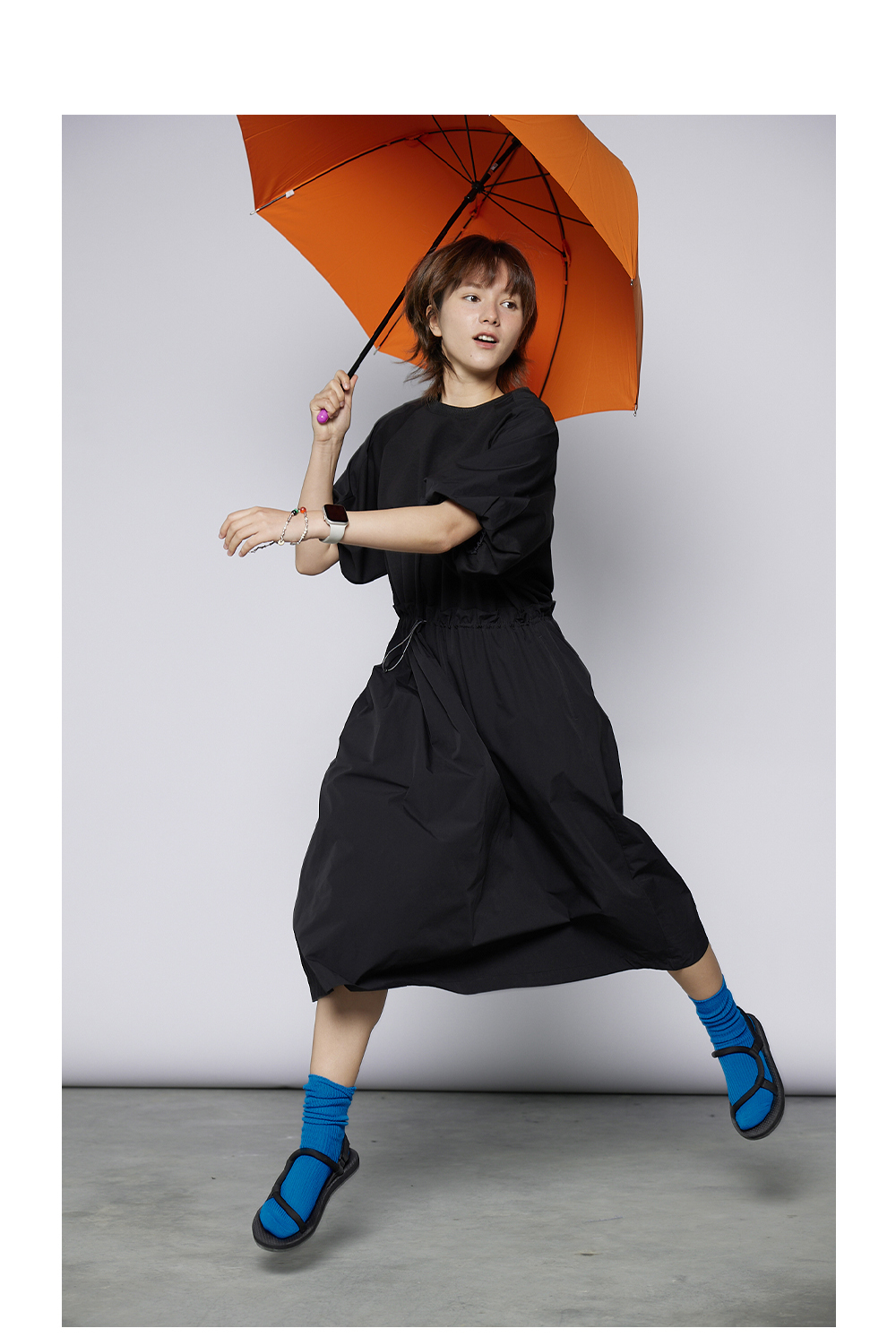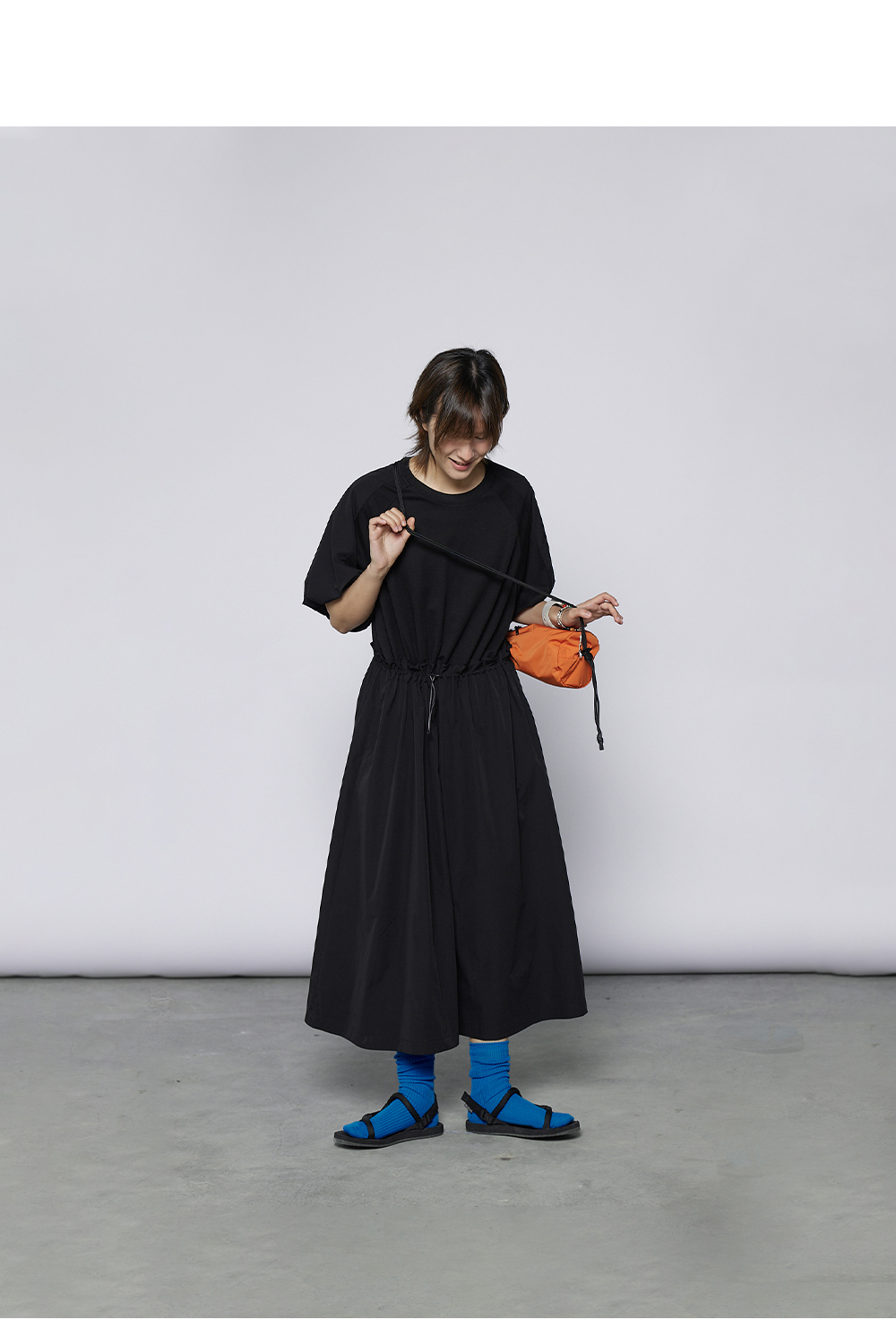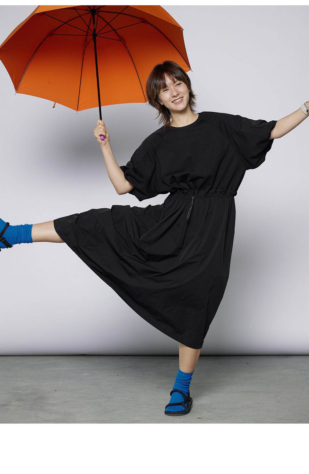 步履不停/4A31120C/速干吸汗轻薄黑色短袖连衣裙A字长裙