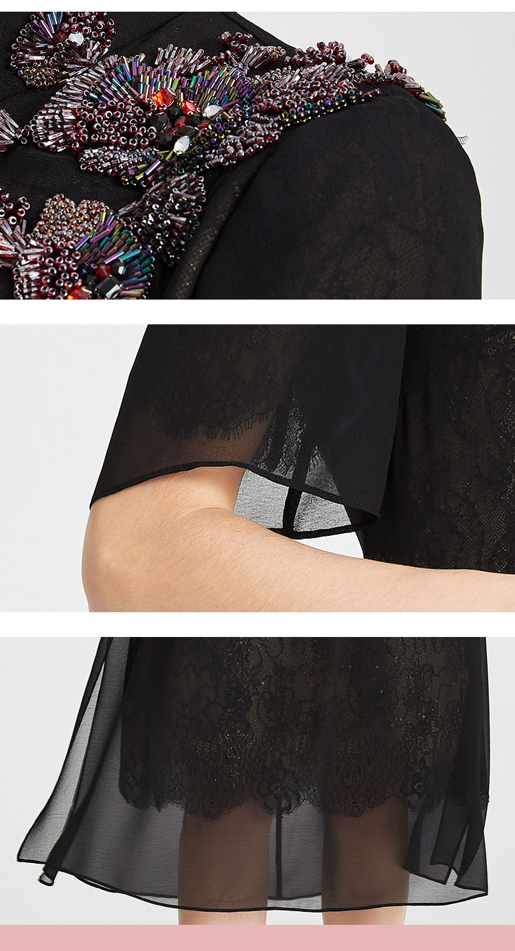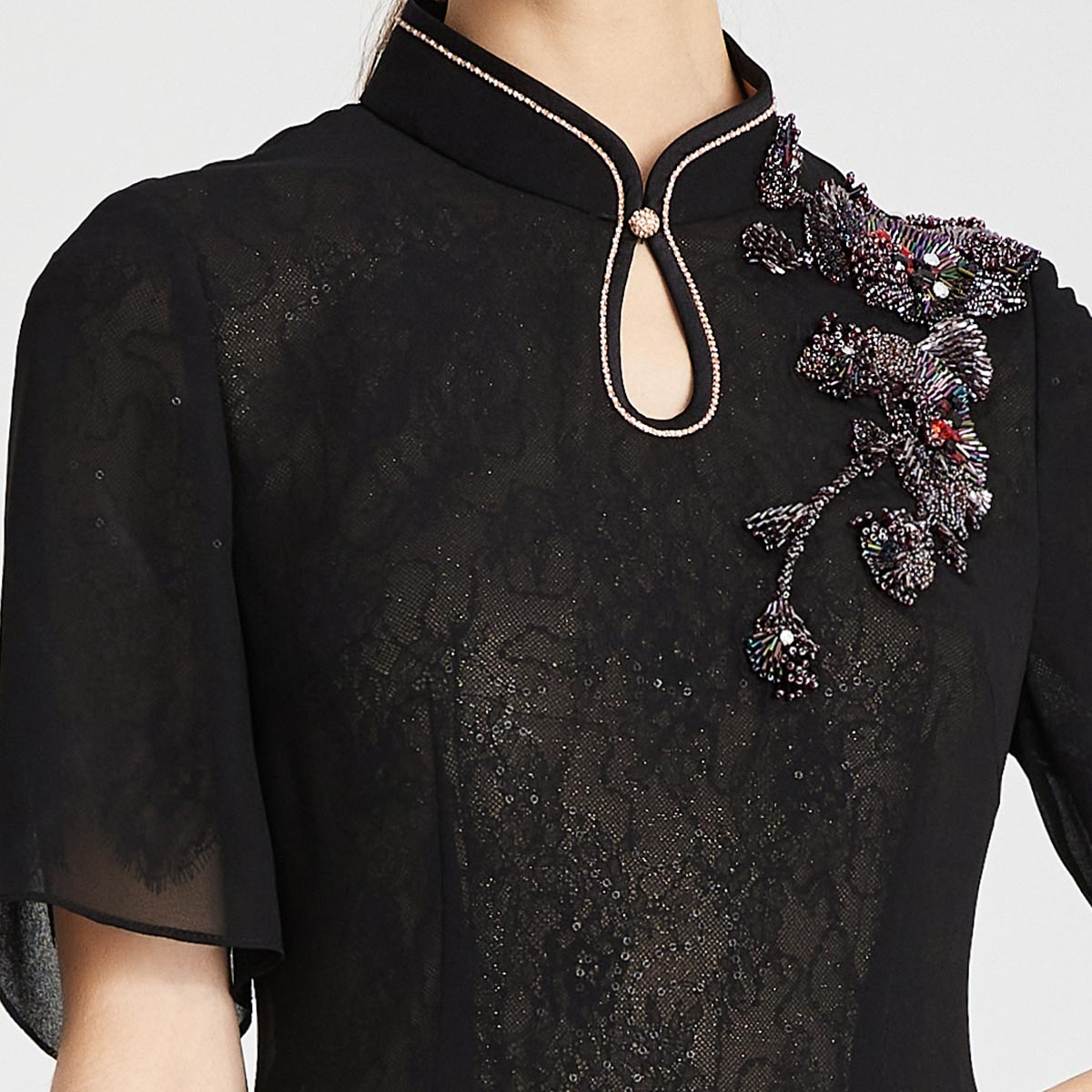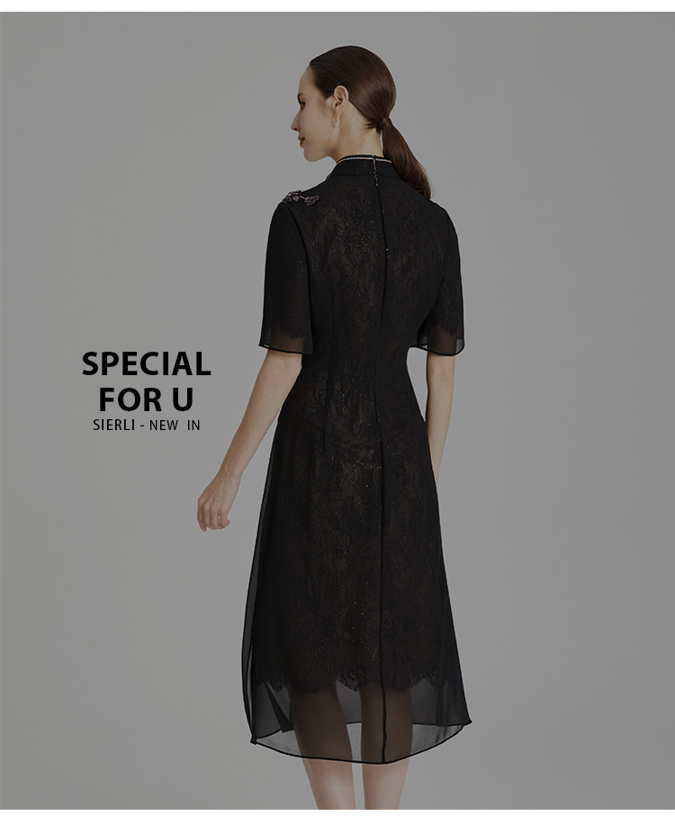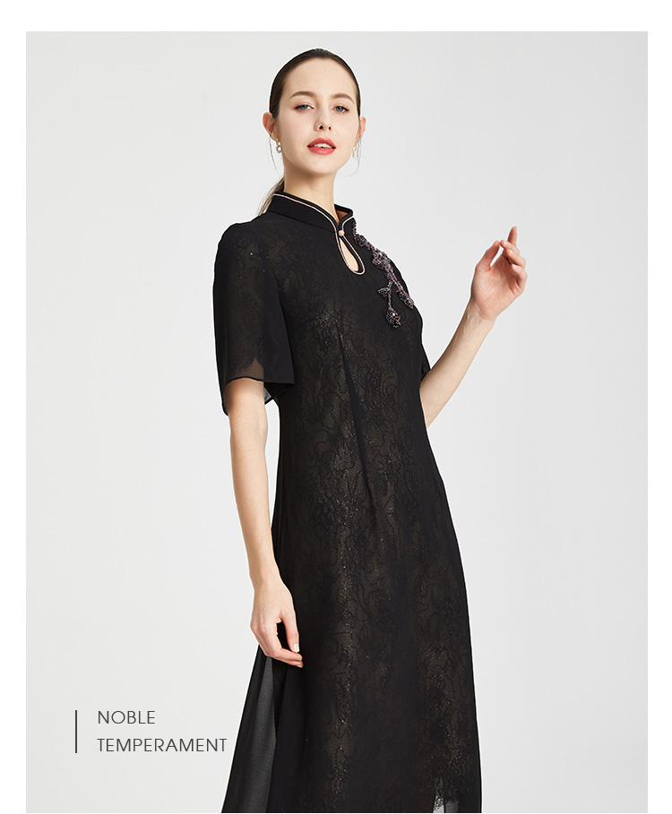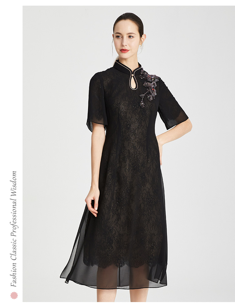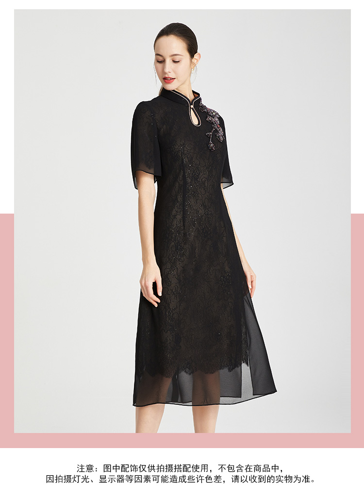 RF8A8斯尔丽瑟俪夏上新中式雪纺烫钻显瘦修身水滴领连衣裙