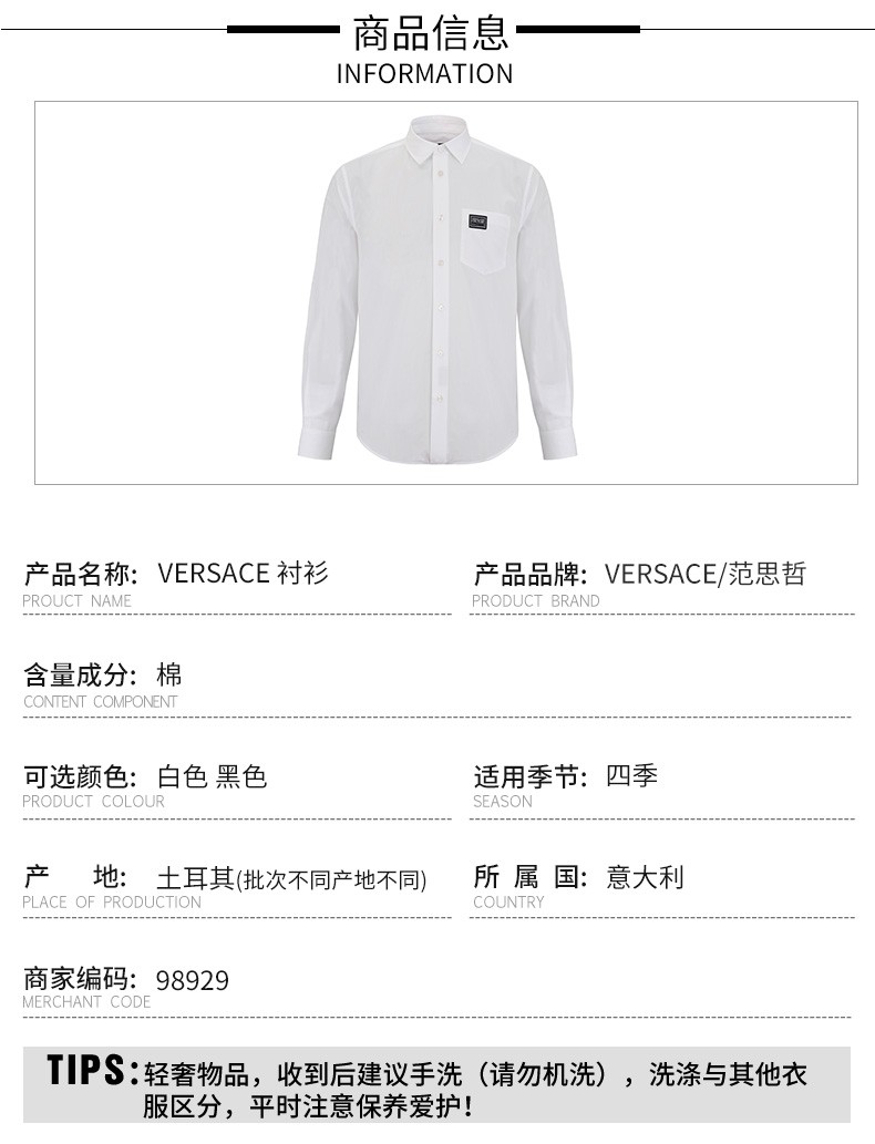 【超惠秒】Versace 范思哲 男士口袋字母logo印花全棉衬衫 98929