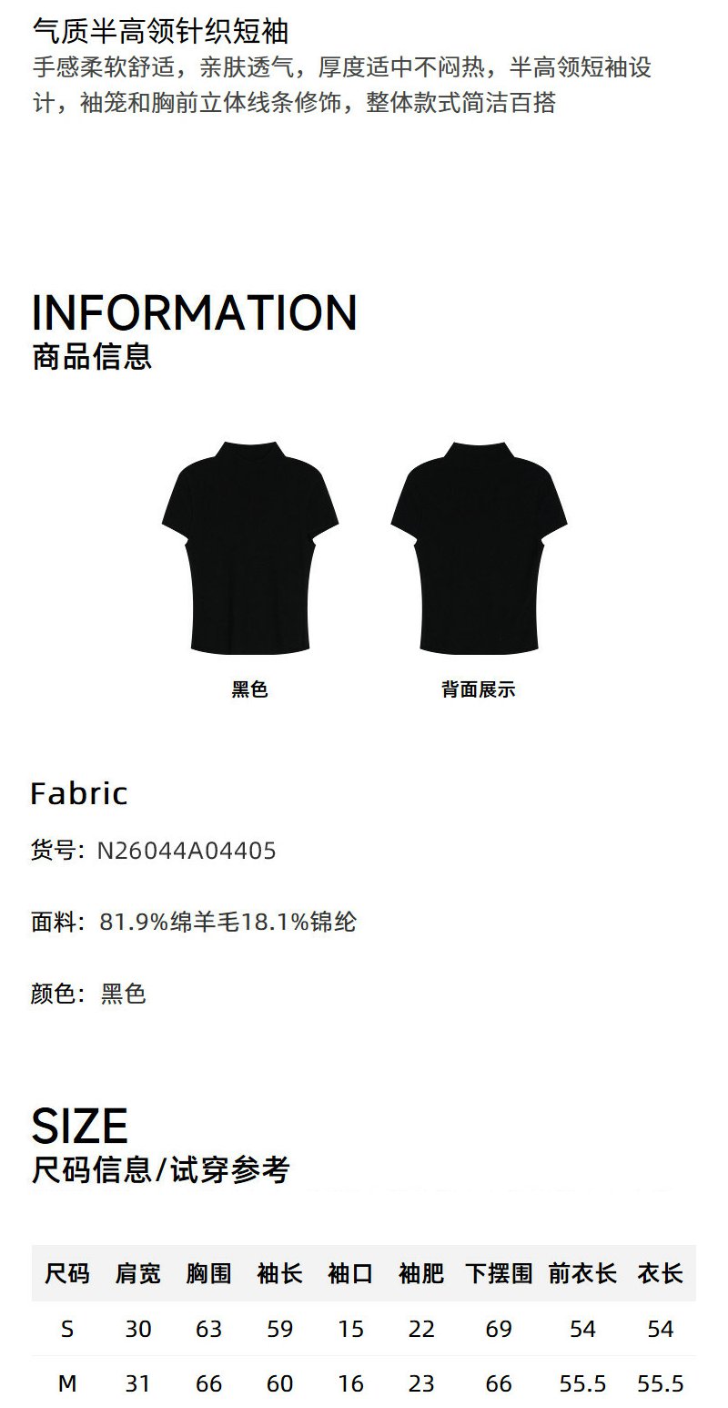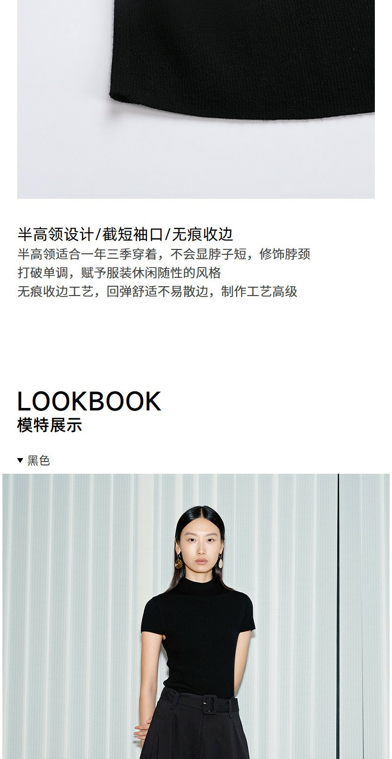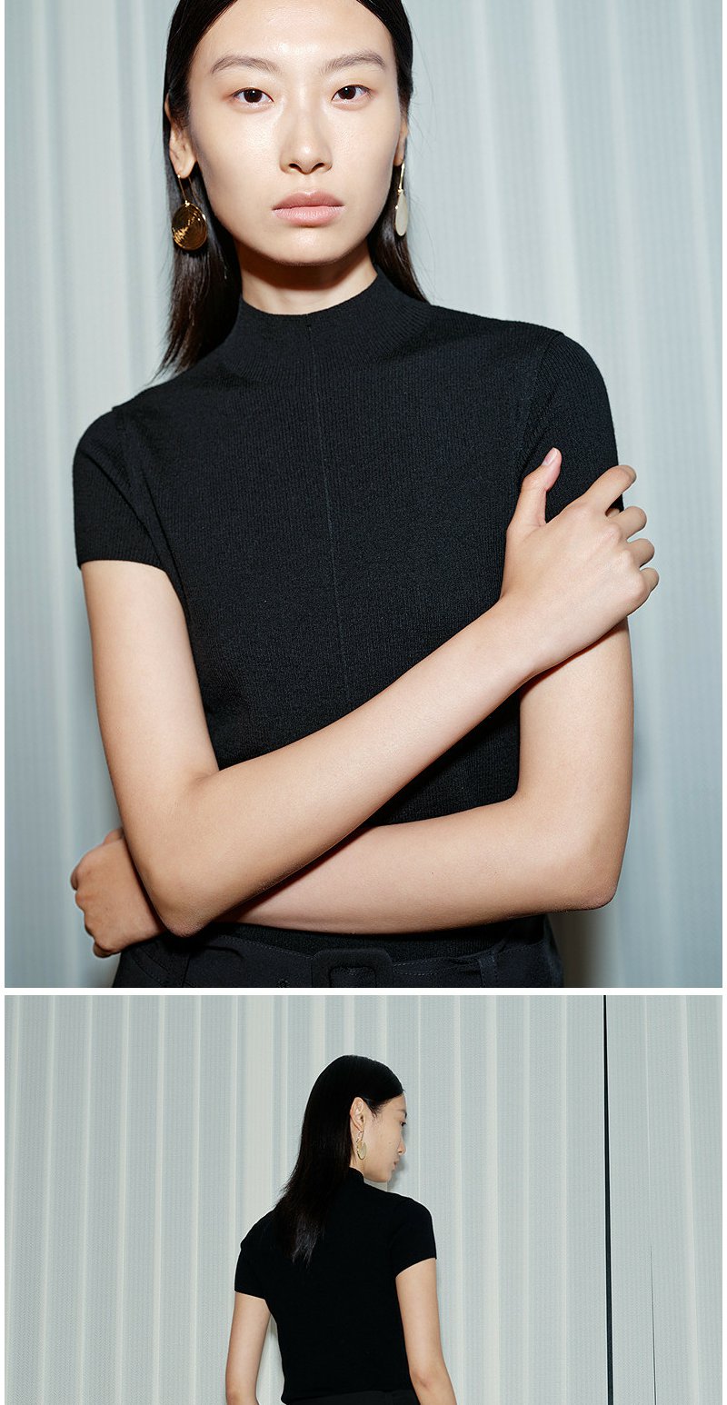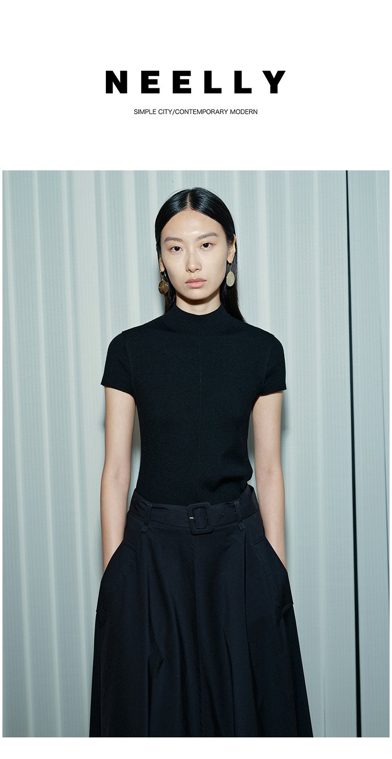 NEELLY纳俪商场同款夏季新款气质半高领短款针织衫女黑色修身上衣N26044A04405