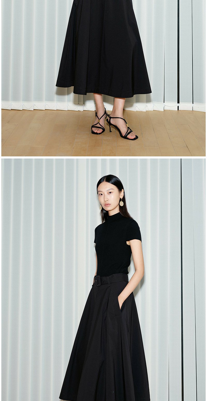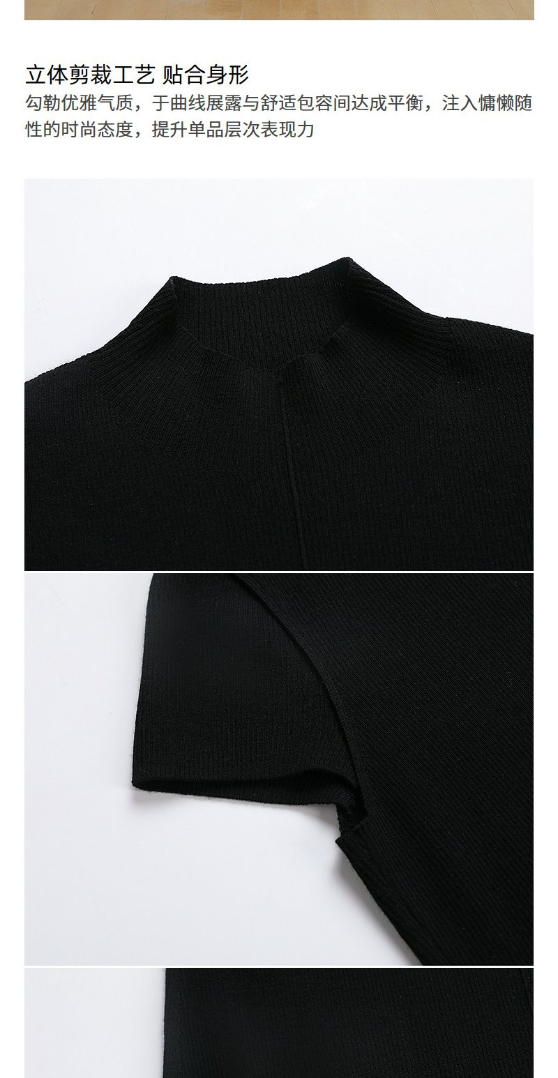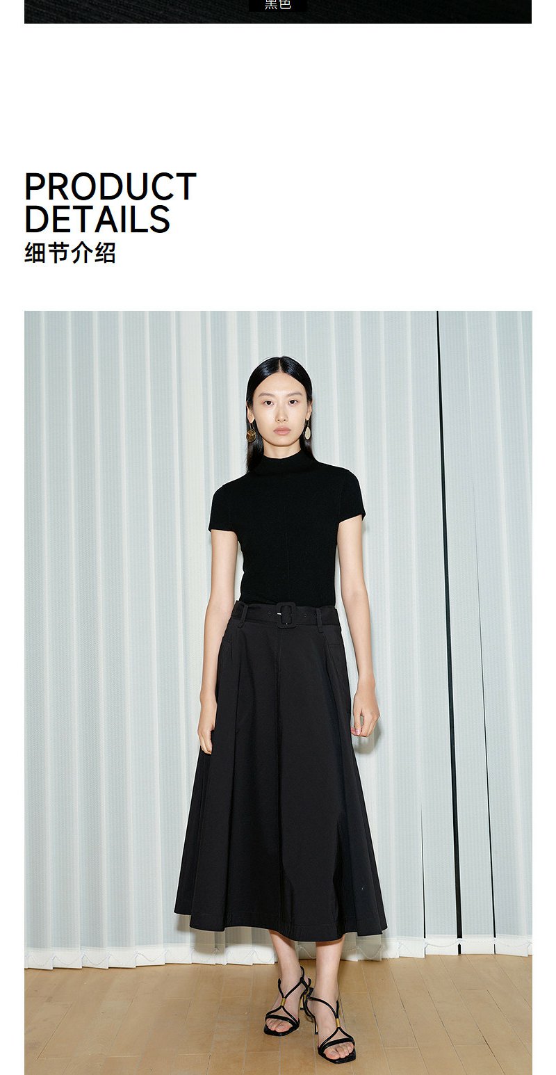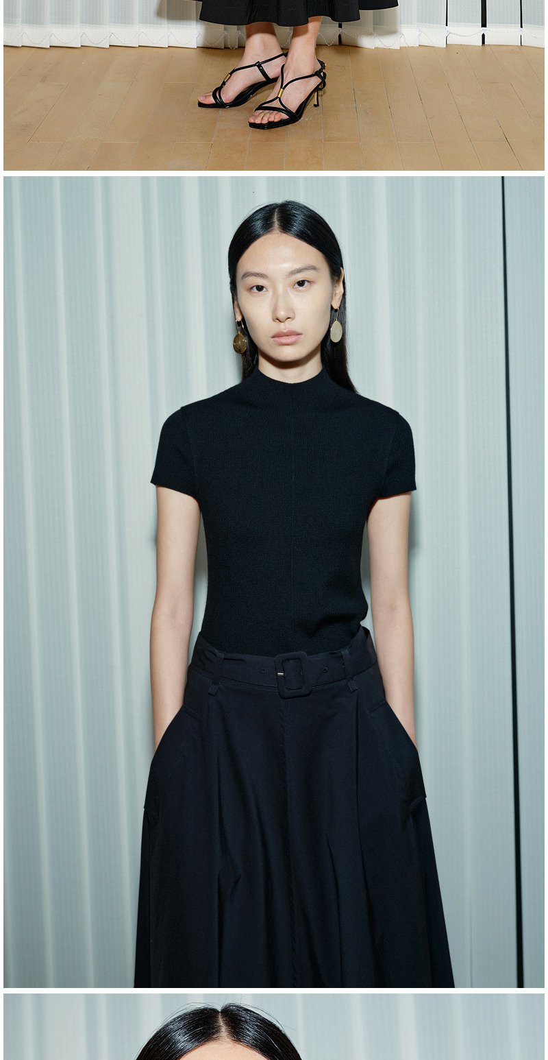 NEELLY纳俪商场同款夏季新款气质半高领短款针织衫女黑色修身上衣N26044A04405