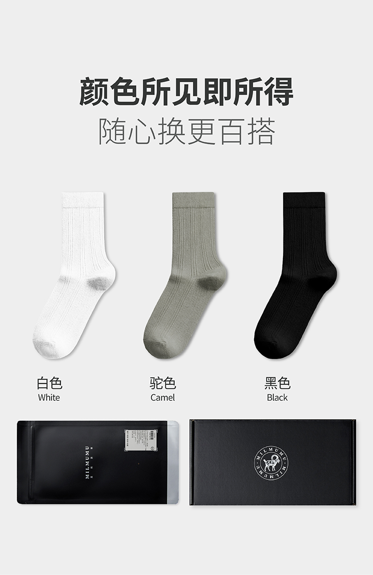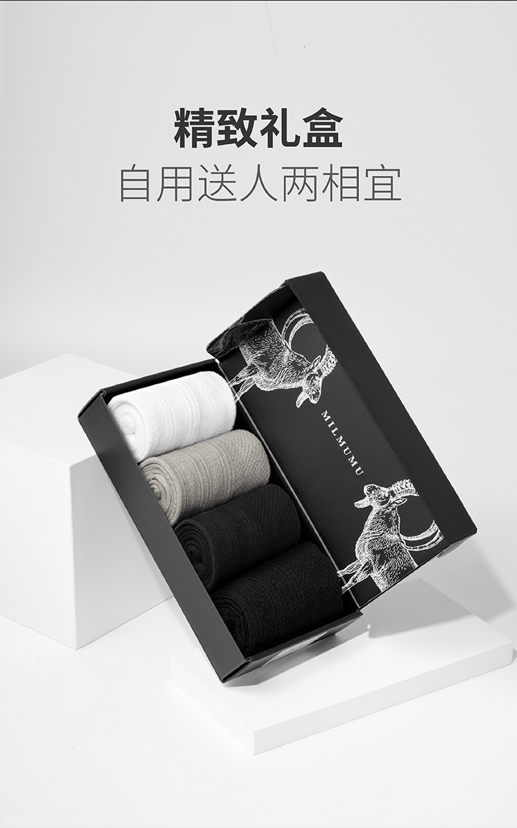 【清仓款!防臭吸汗,舒适透气】MILMUMU男士重纺袜 4双/盒 秋冬男士中筒袜,保暖加厚,弹力拉伸,穿着舒服,重纺新疆棉,加倍吸汗,透气防臭不易起球