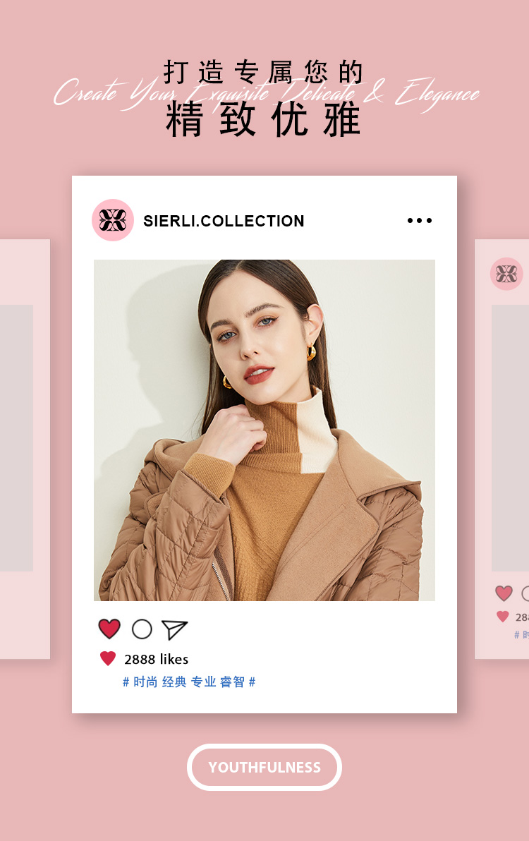 LR001斯尔丽瑟俪2021年冬上新时尚洋气两面穿拼接中长款羽绒服