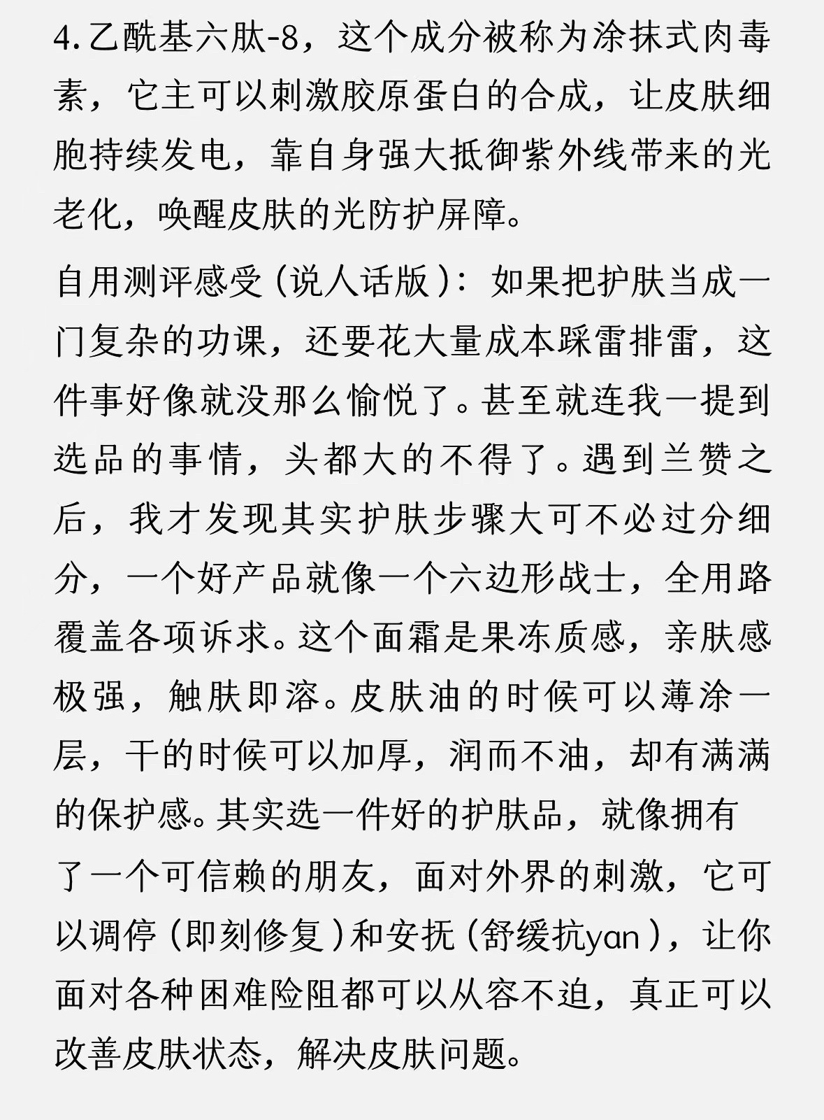 里面有乙酰基六肽,就是涂抹式的肉毒素,
