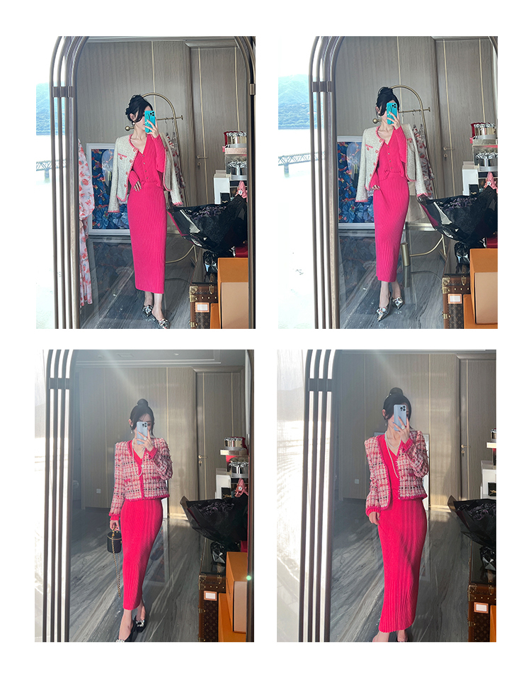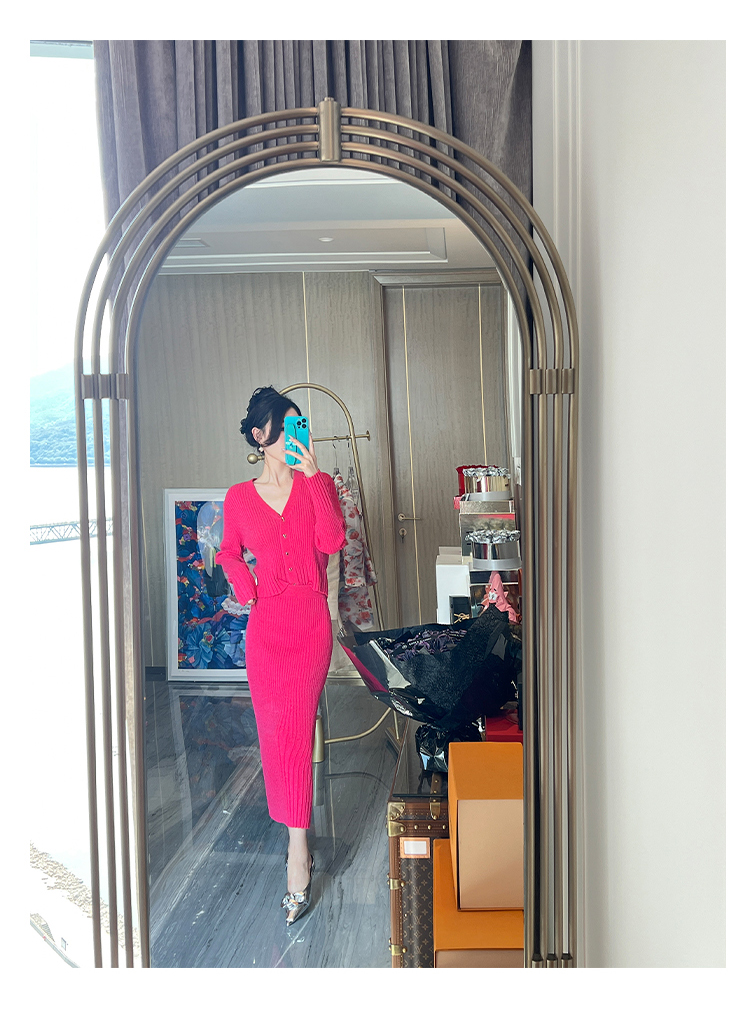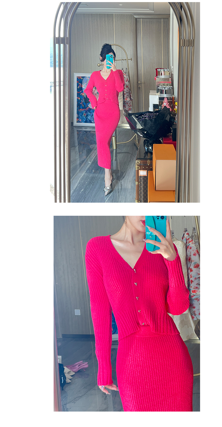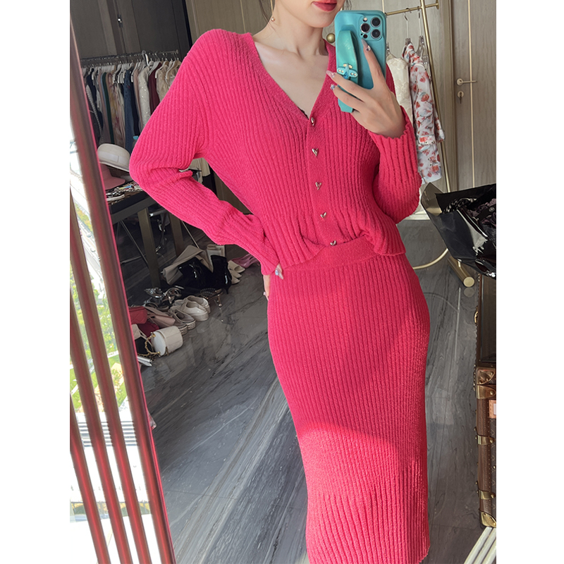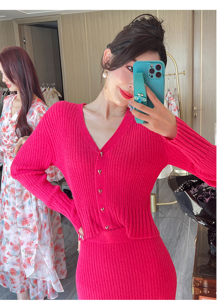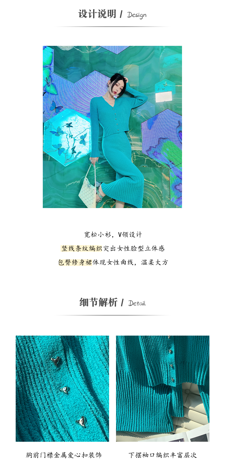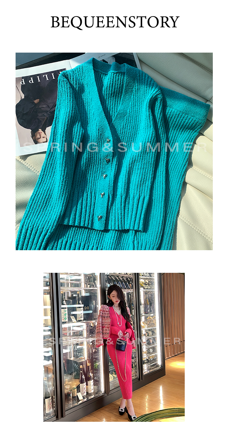 BeQueenStory【针织套装】 甜美修身开衫包臀裙针织套装