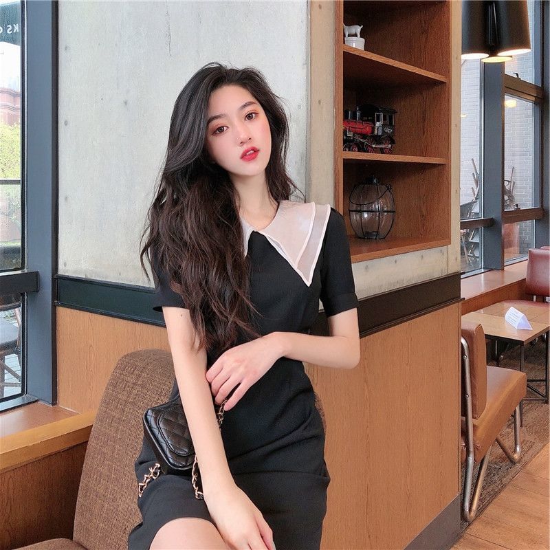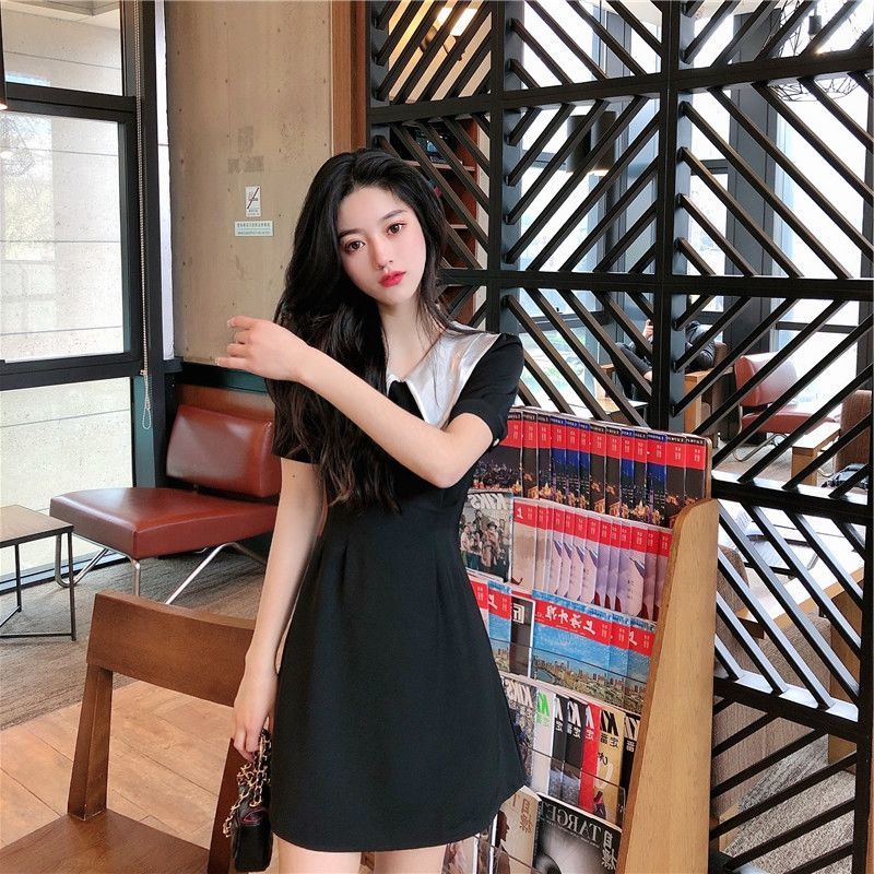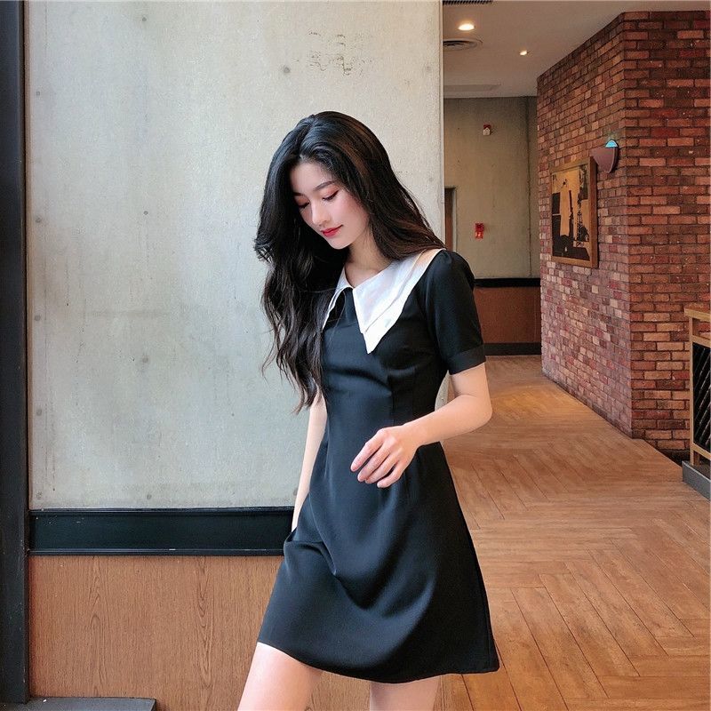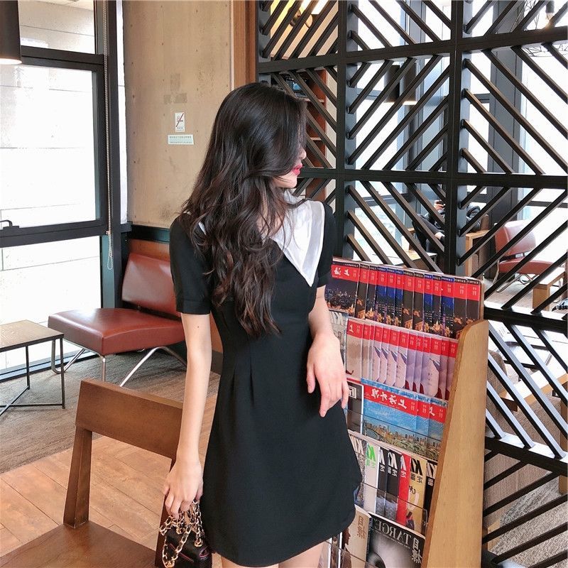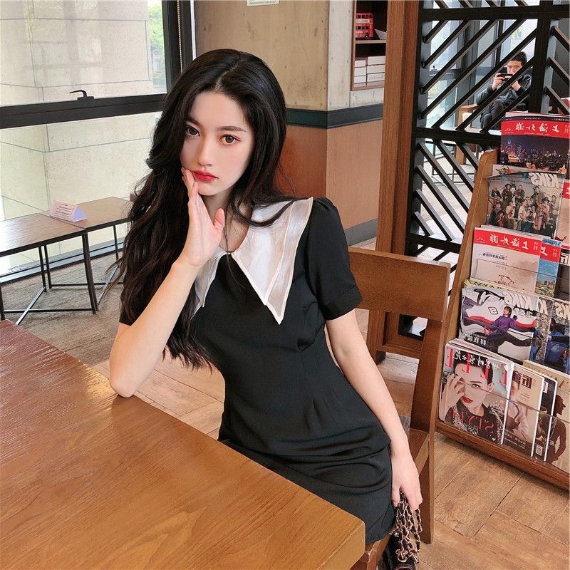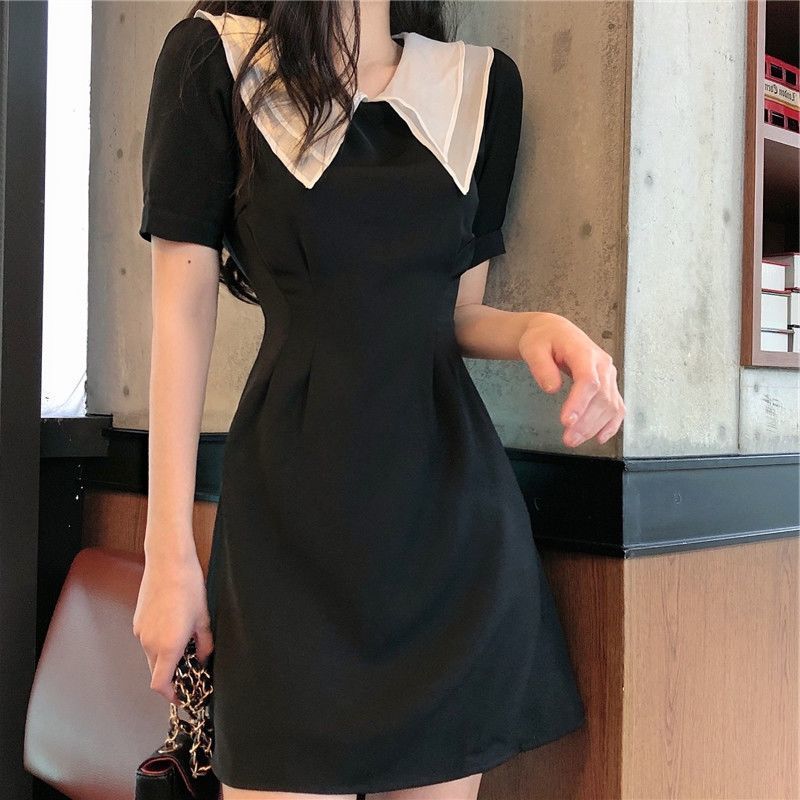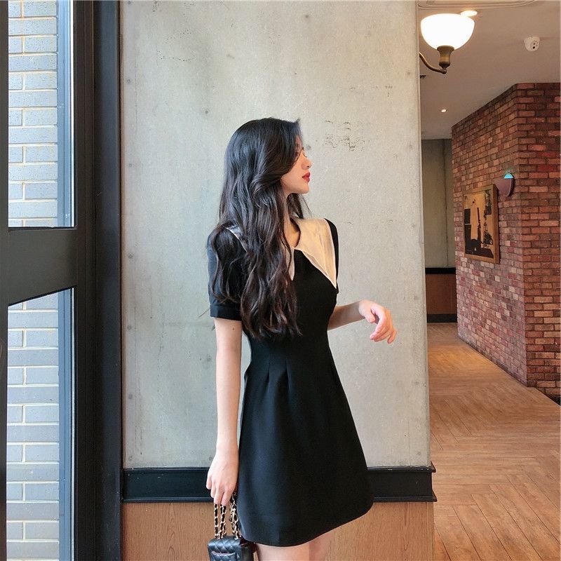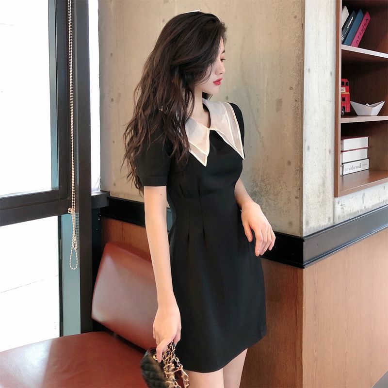 黛唯梵2022新款高腰显瘦小黑裙女翻领名媛气质炸街桔梗连衣裙国庆清明出游