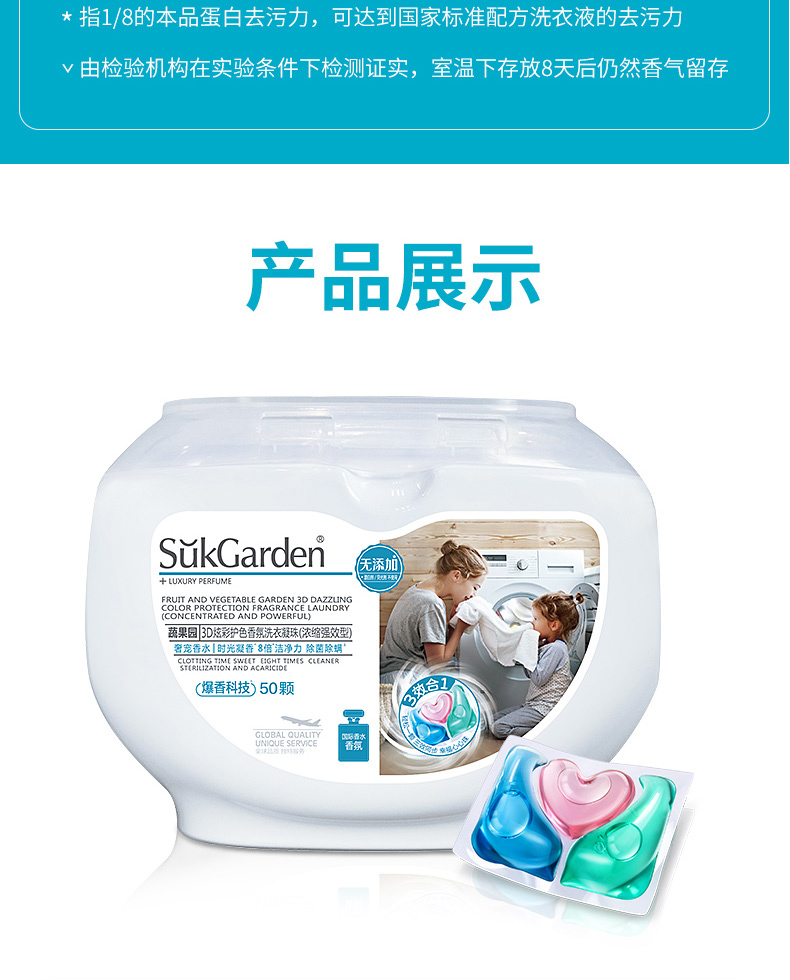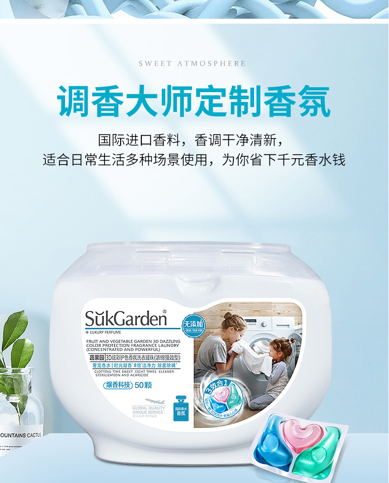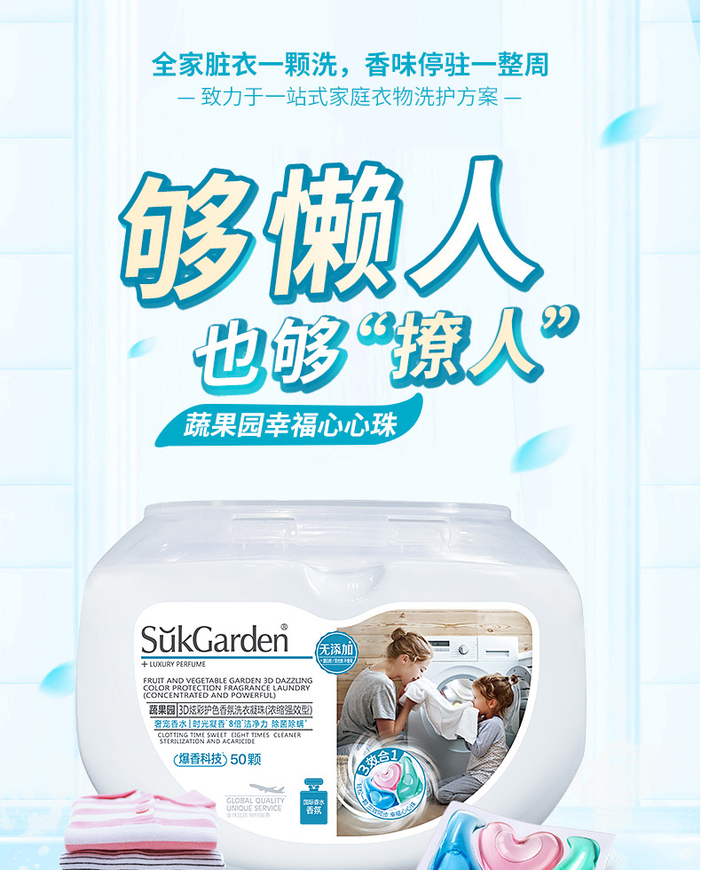 英国SUKGARDEN蔬果园3D炫彩护色香氛洗衣凝珠50颗*2