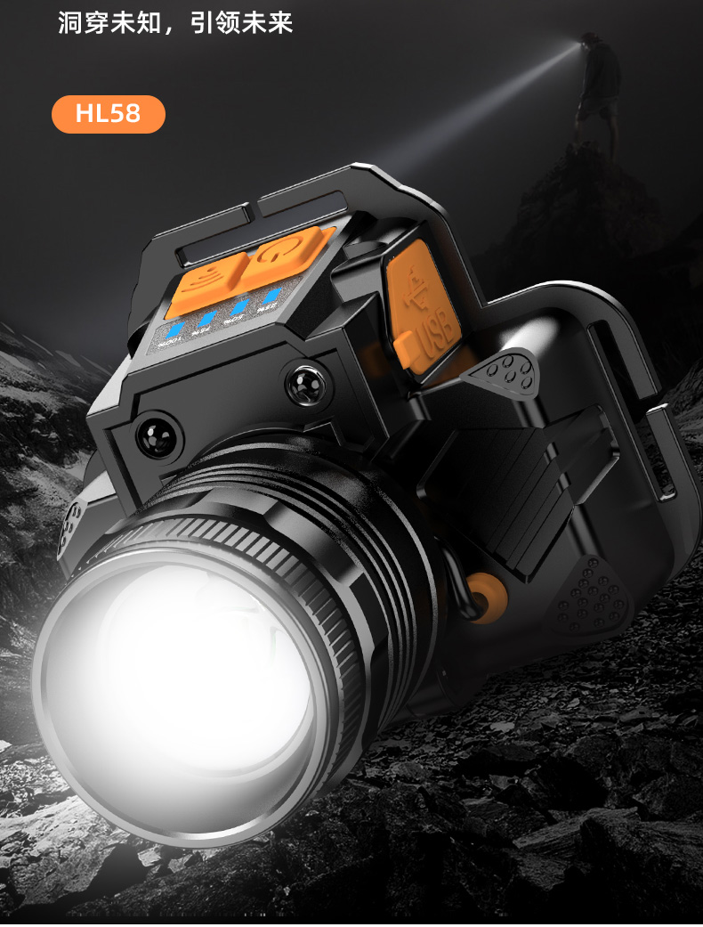 SUPERFIRE神火HL58头灯头戴式强光远射旋转调焦充电led户外钓鱼灯