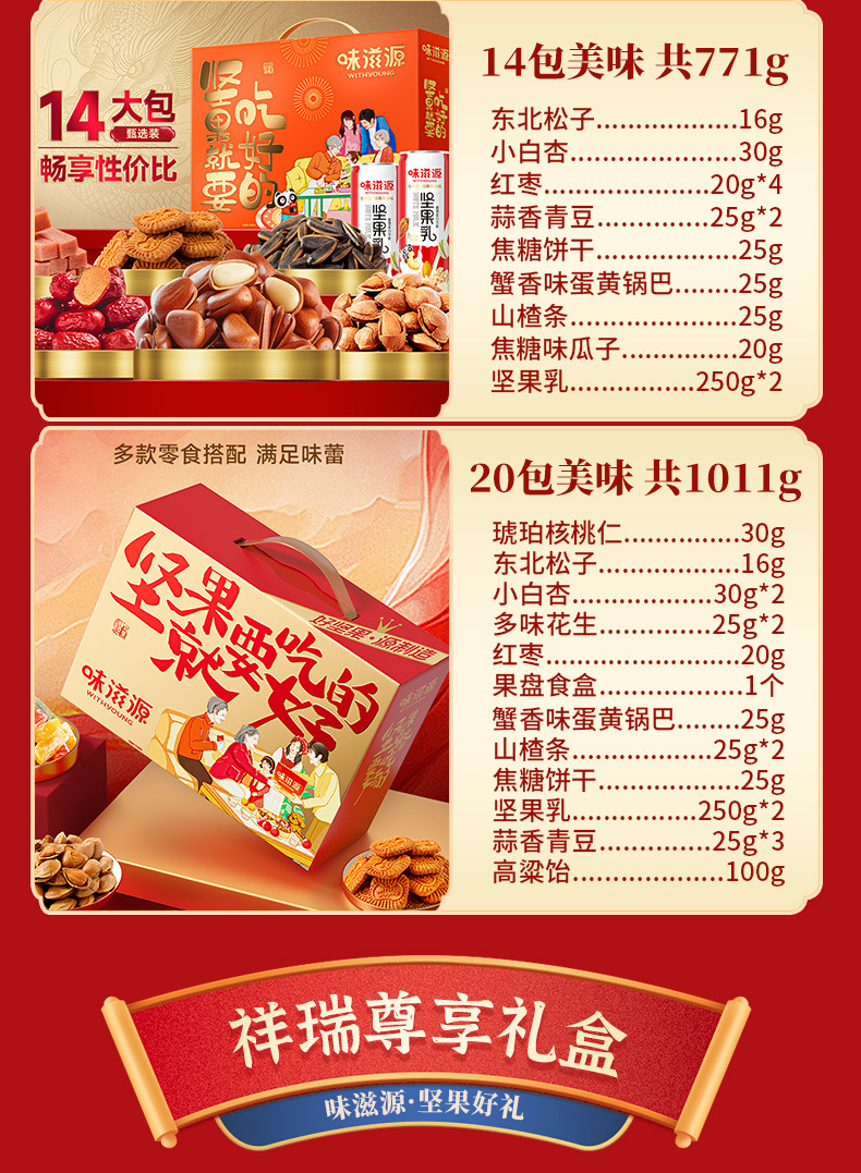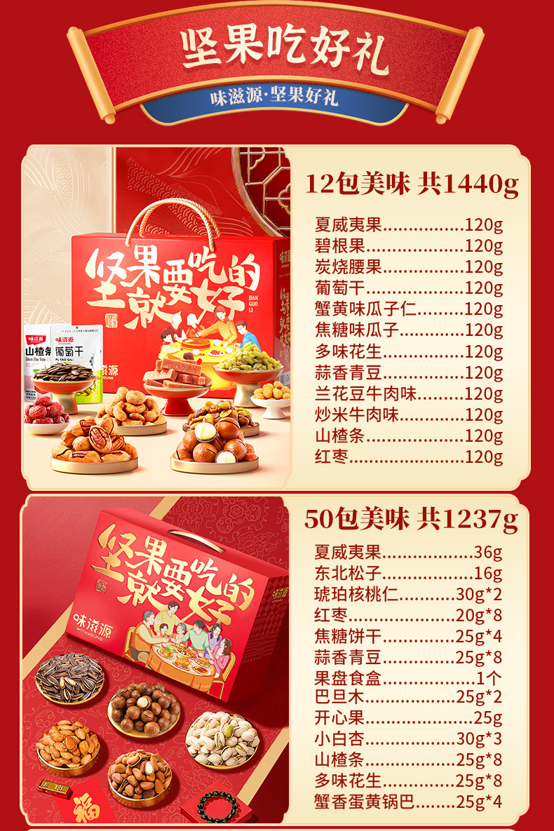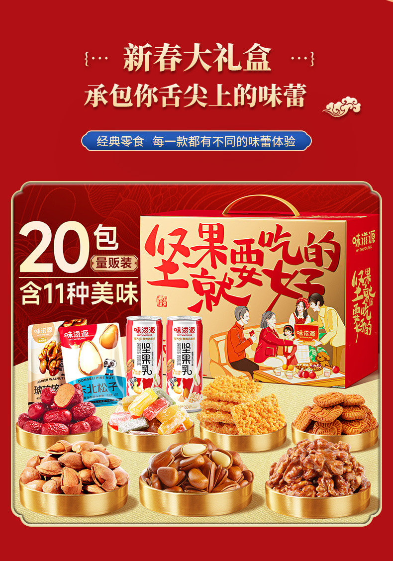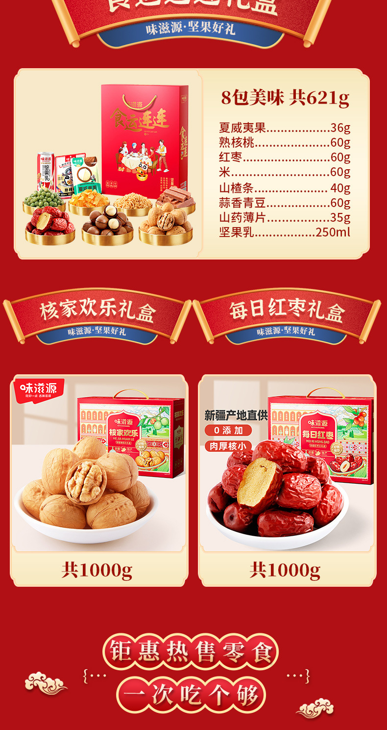 【食来运转坚果礼盒】核桃红枣松子巴旦木 坚果好礼年货礼盒 多种搭配礼盒款