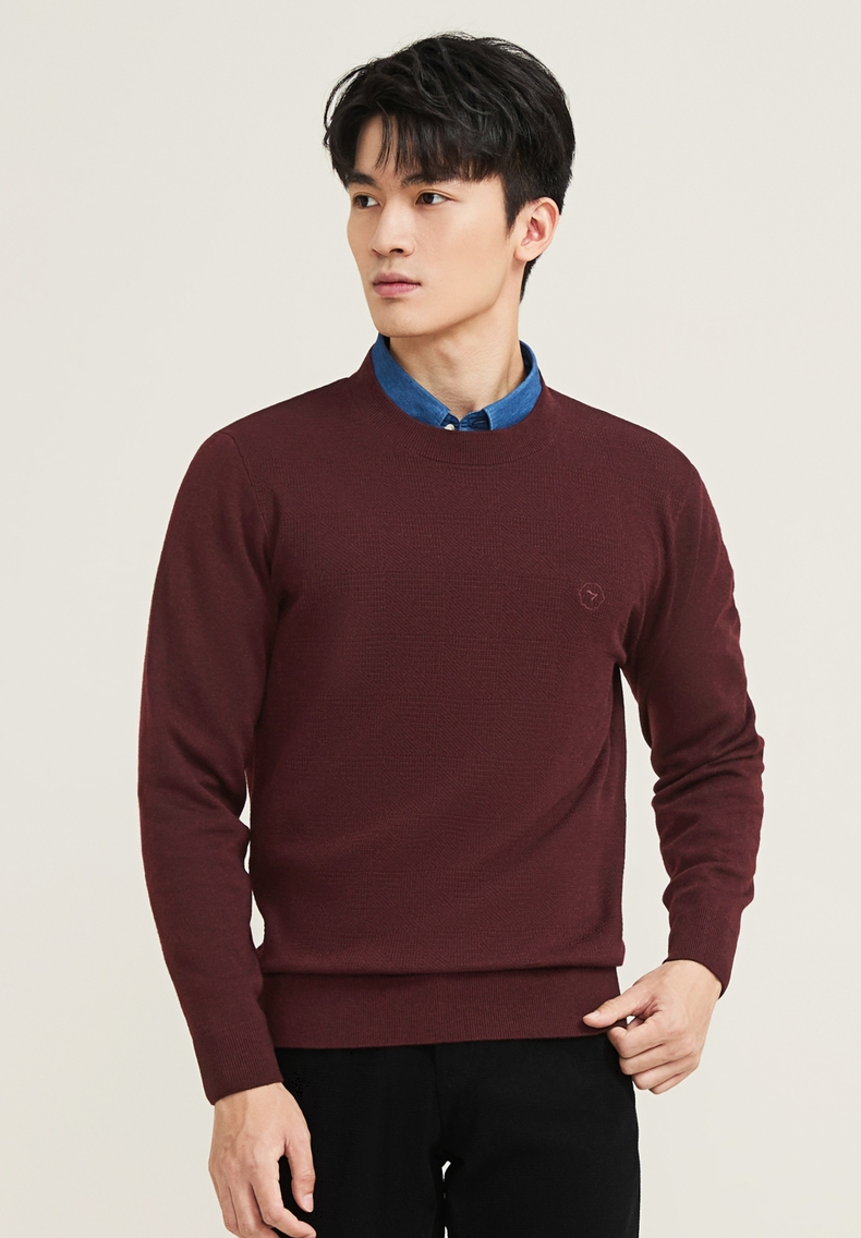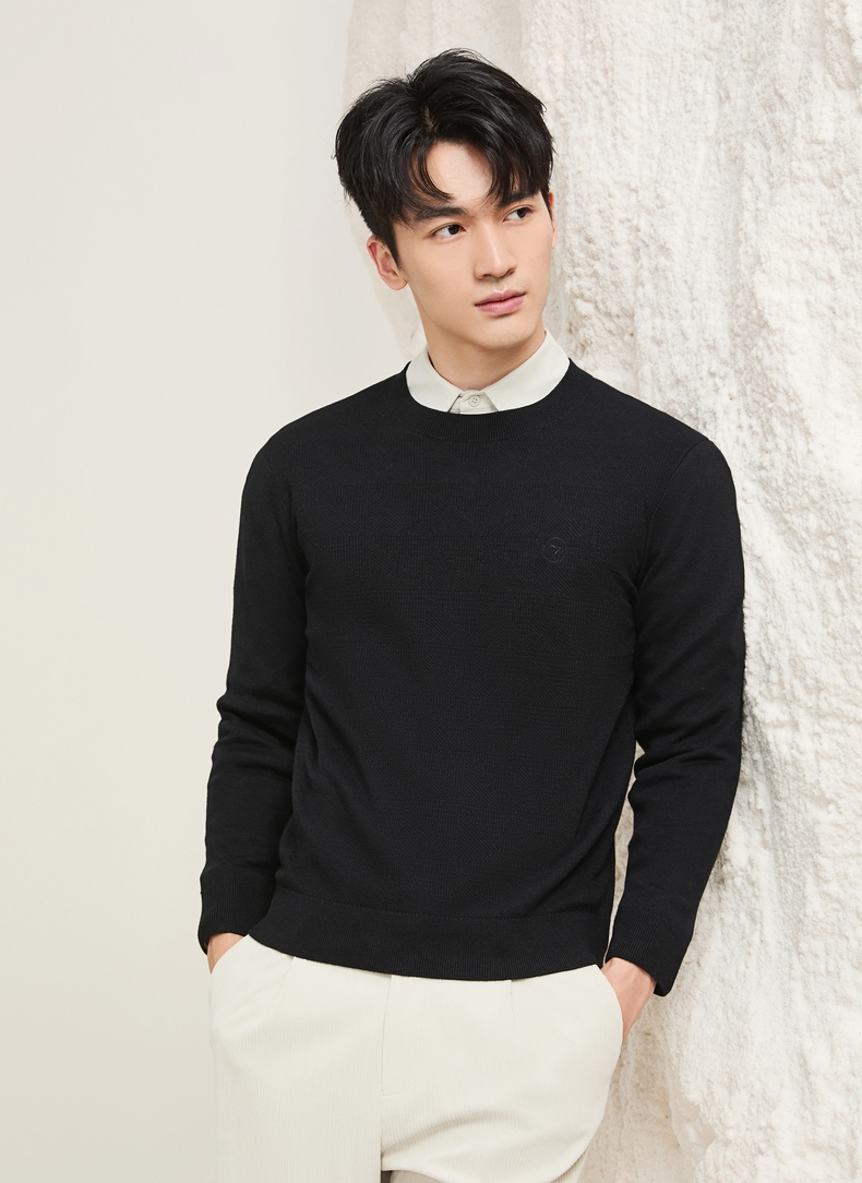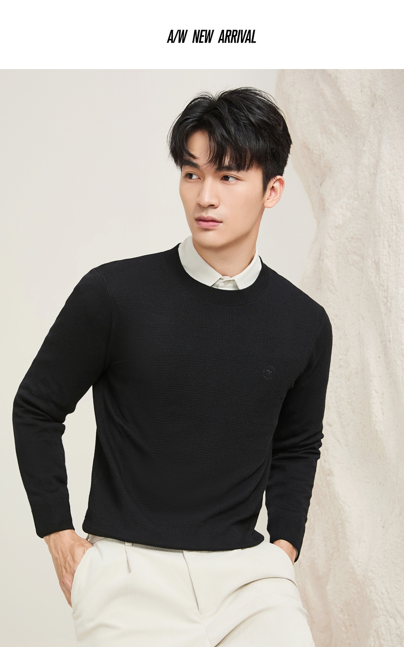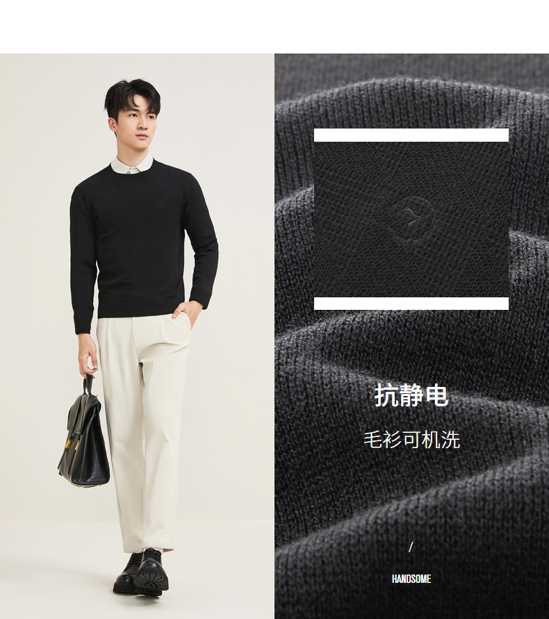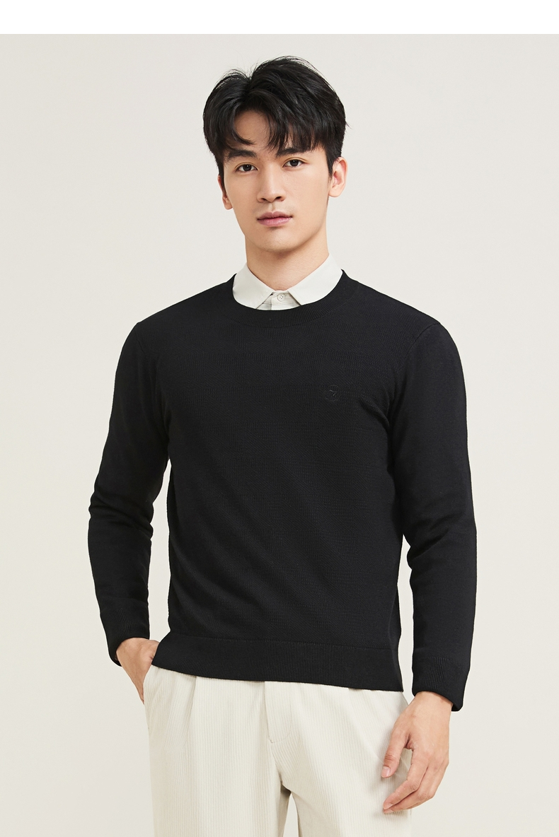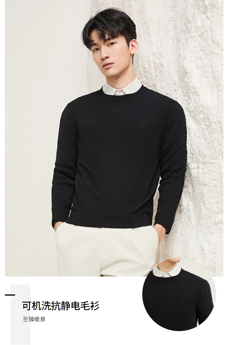 【含羊毛/蚕丝/可机洗/抗静电】柒牌男装套头2025新款圆领薄毛衫129Y70330