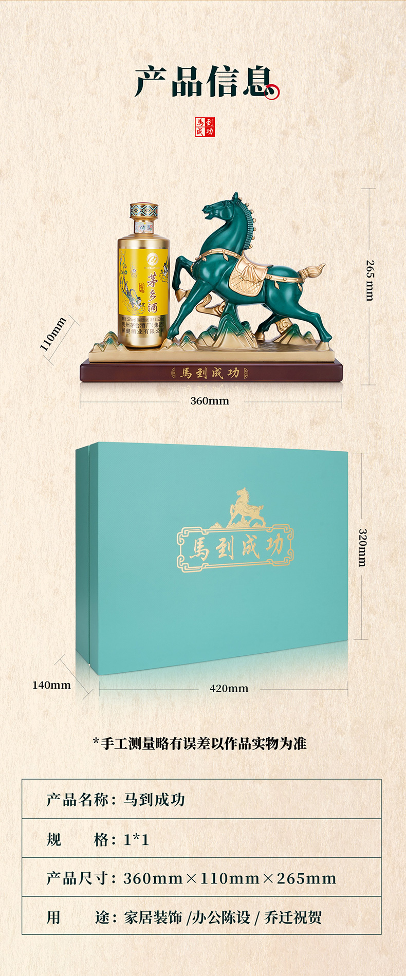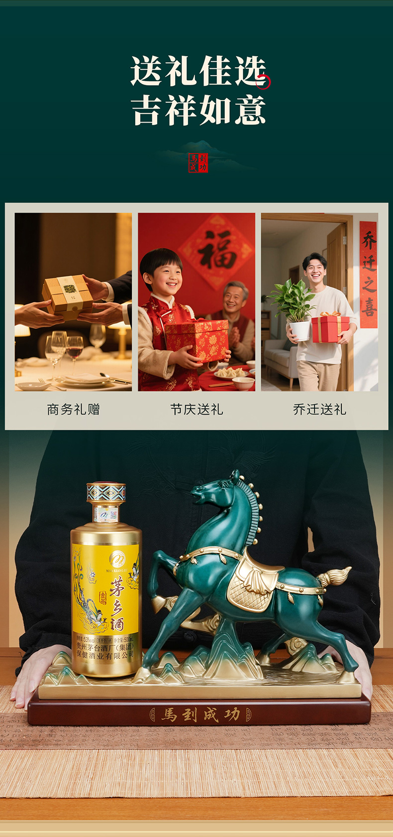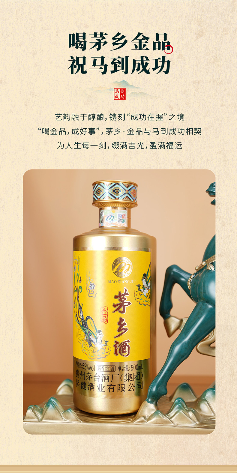 茅乡酒工艺品马到成功2025款酱香型白酒53度500ml