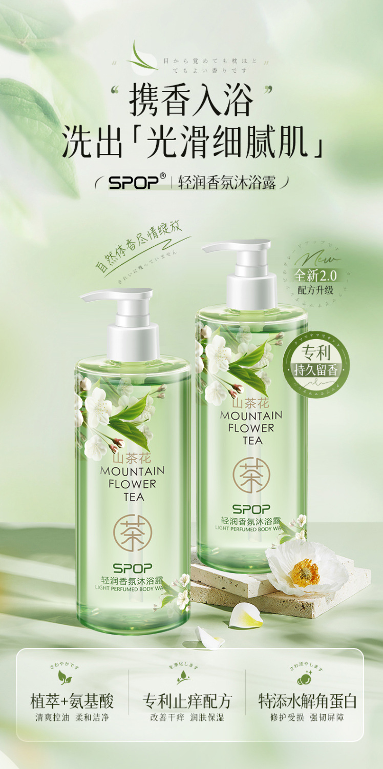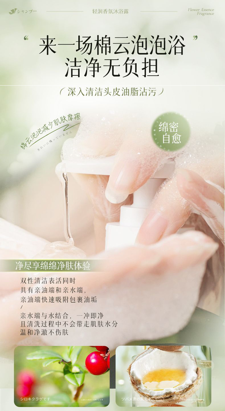 【1瓶开启 香氛疗愈之旅】SPOP山茶花轻润香氛洗发水去屑控油蓬松滋润温和持久留香沐浴露,轻润控油,蓬松秀发,水润去屑,净澈头皮。ry