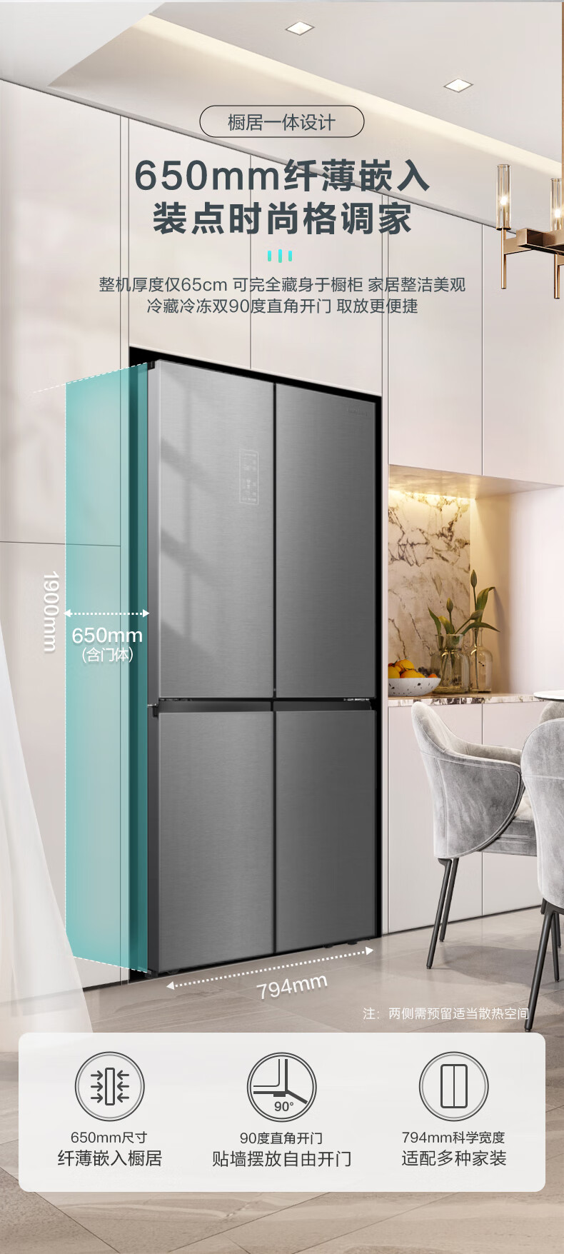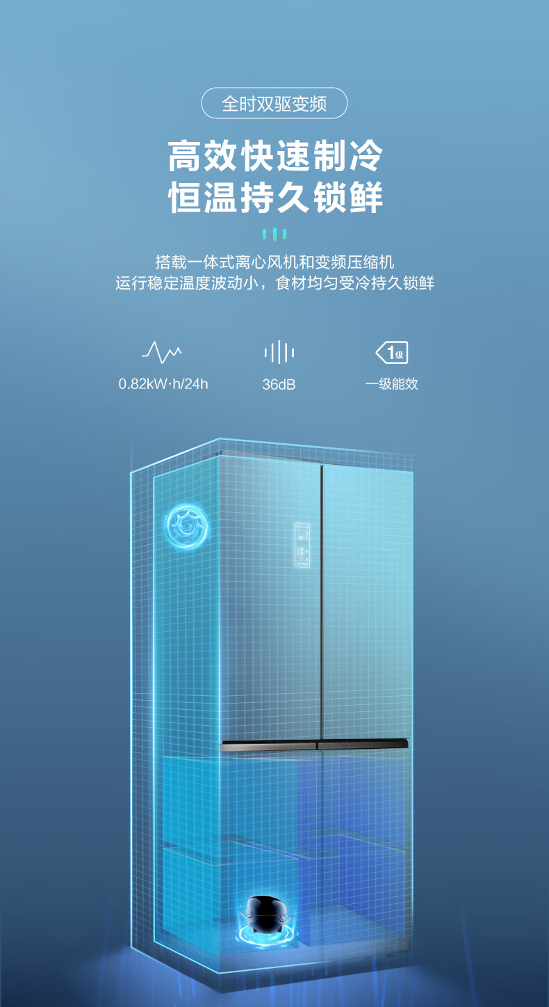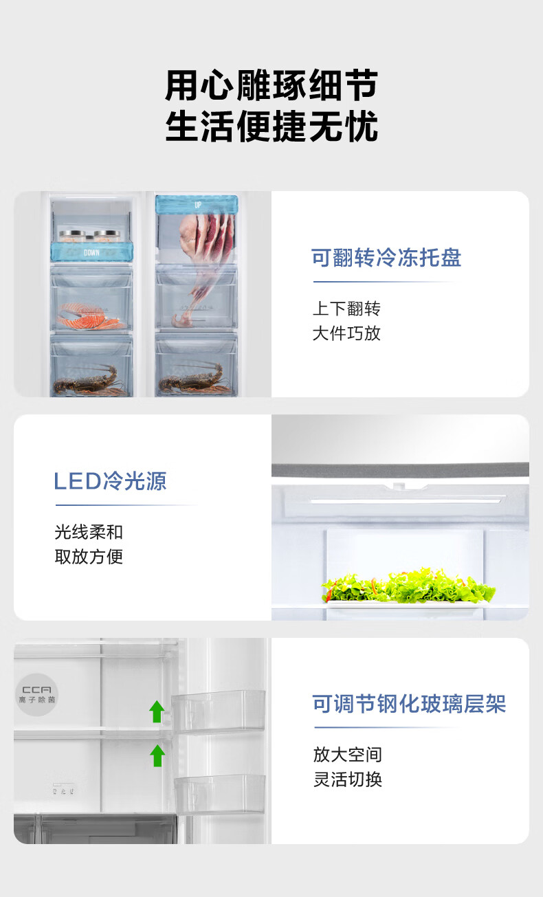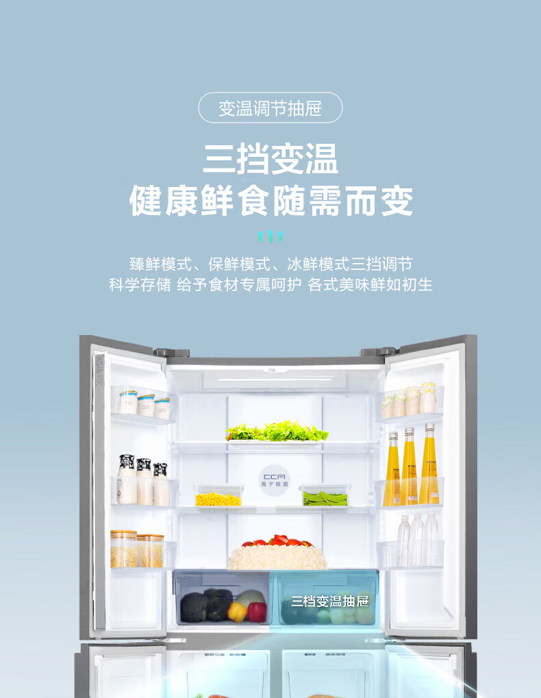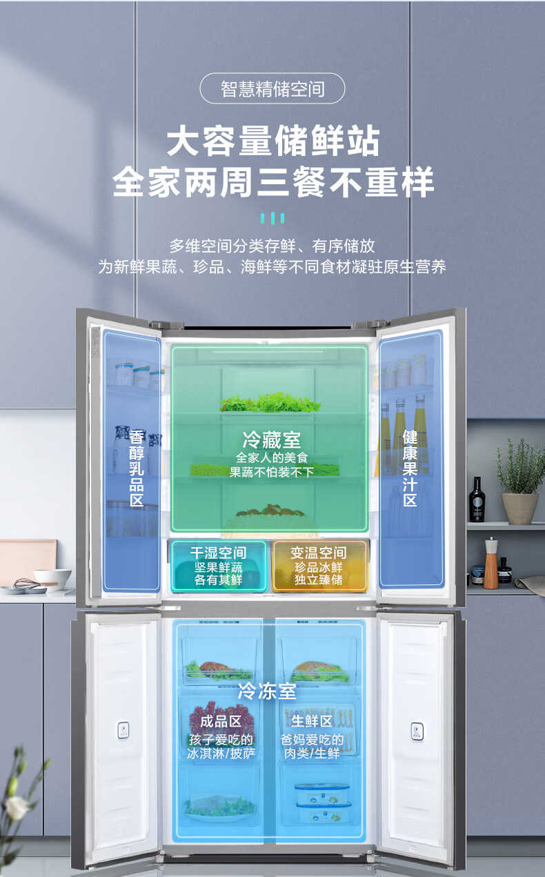 容声(Ronshen)466升 十字四开门冰箱 变频一级能效 风冷无霜 冷藏冷冻全净化 三档变温 彩晶面板BCD-466WVS1FPC