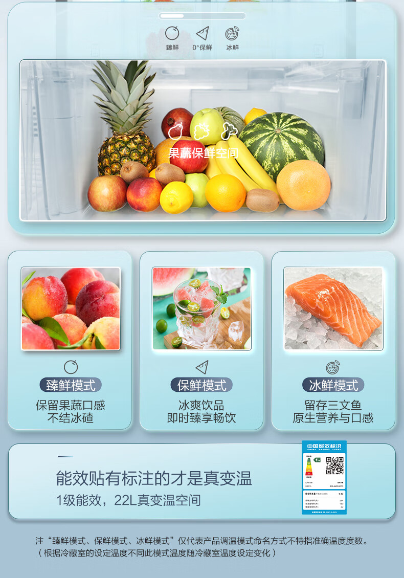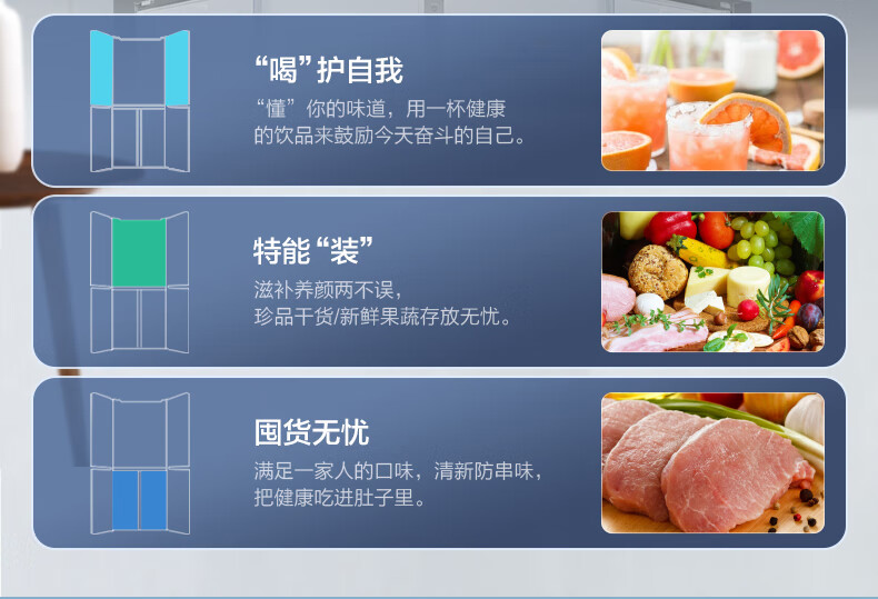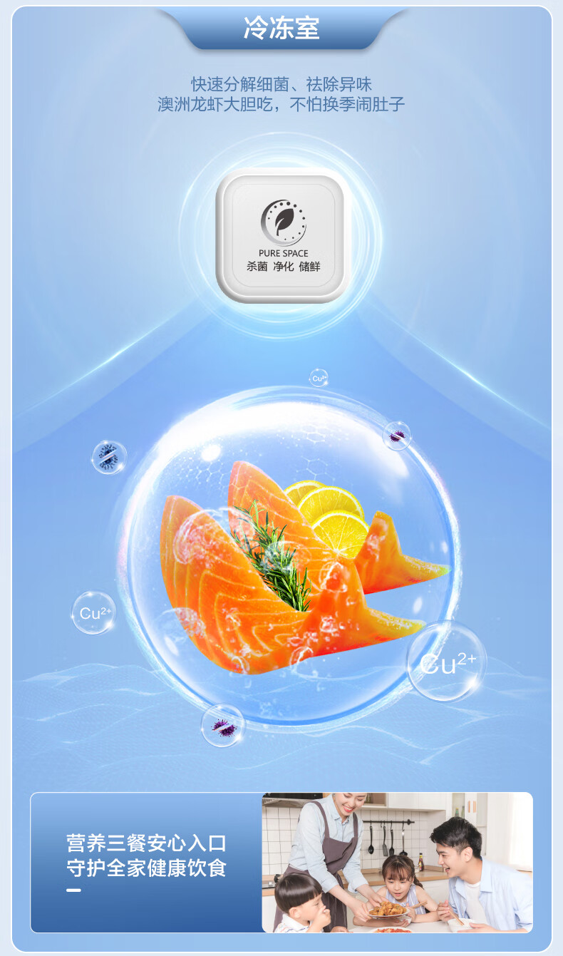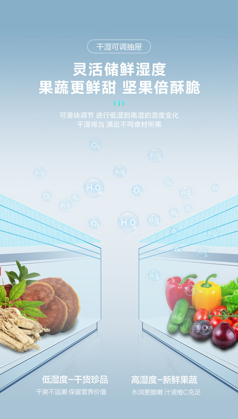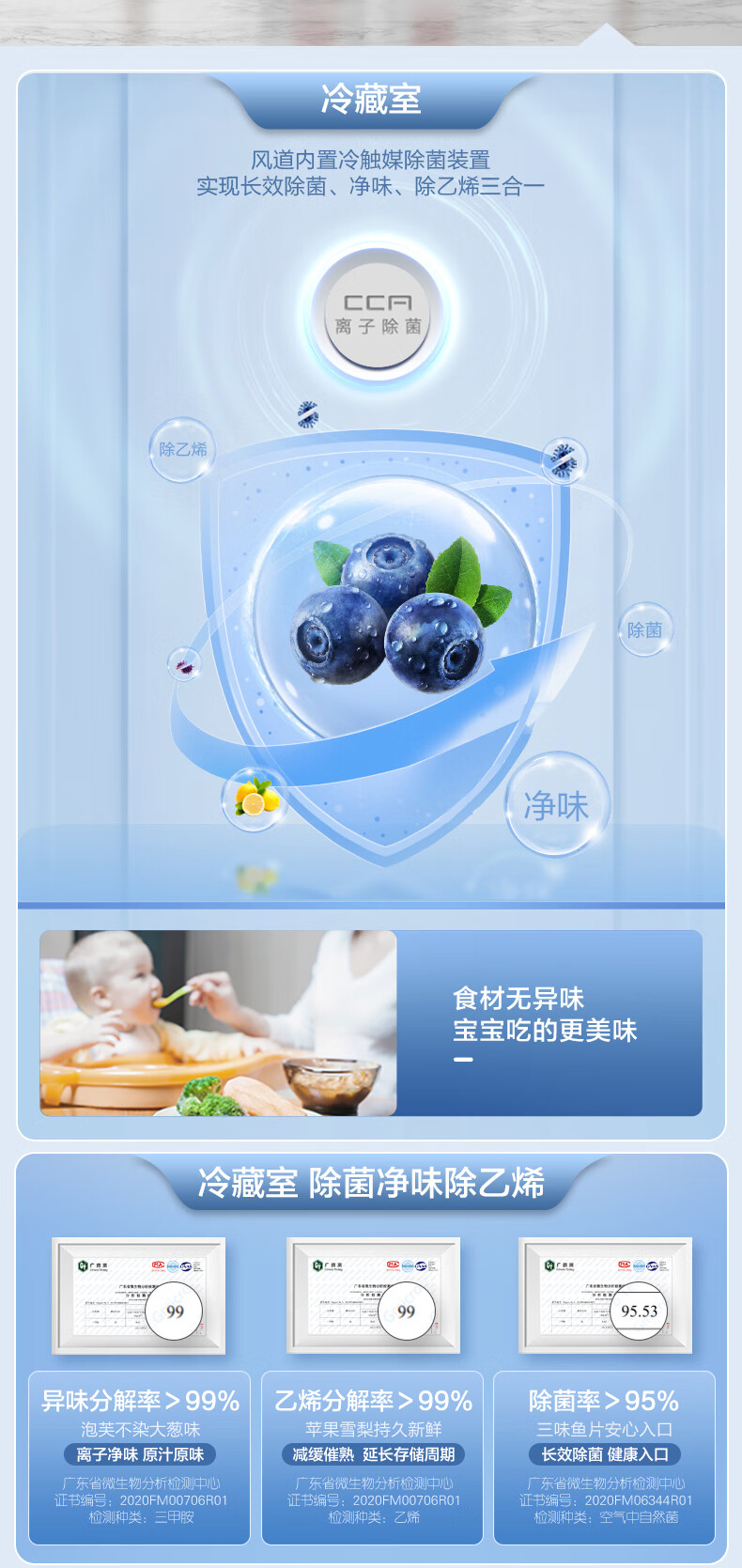 容声(Ronshen)466升 十字四开门冰箱 变频一级能效 风冷无霜 冷藏冷冻全净化 三档变温 彩晶面板BCD-466WVS1FPC