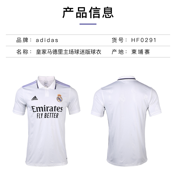 ADIDAS/阿迪达斯 REAL H JSY 22-23赛季皇家马德里主场球迷版比赛球衣HF0291