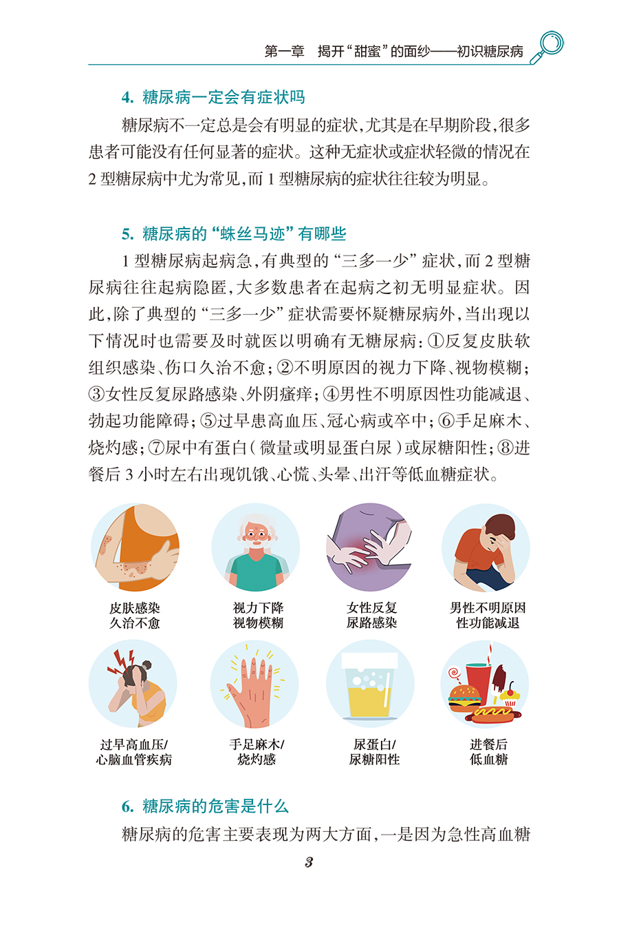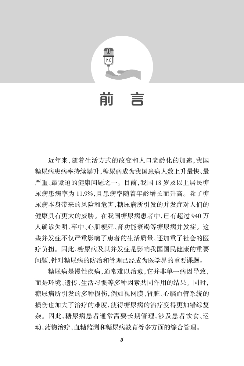 《中国糖尿病患者健康教育指南(2023)》作为《中国糖尿病健康管理规范(2020)》的配套书籍,以科学证据为基础,从维护健康的角度,以通俗易懂的语言、形象生动的漫画、精炼的内容选材,同时辅以糖尿病健康教育宣传视频,向读者深入浅出地介绍糖尿病防治知识,为糖尿病患者提供健康知识和干预指导。内容包括糖尿病概述、控制血糖相关知识、糖尿病的药物治疗和非药物治疗、特殊人群的血糖管理、糖尿病的自我健康管理,总结提炼了关于糖尿病的常见误区,并给出科学的解释。