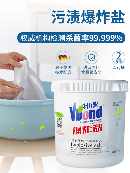 建议每家每户都备上邦德新款- 具有消毒杀菌功能的爆炸盐💥 及时消杀各种携带的病菌和污渍 为家人的健康更多一份保护!! 邦德爆炸盐源于德国专利配方技术 绿色环保,食品级原料✅ 安全不伤手,更不污染环境 主要成份为:过氧碳酸钠✅ 旧款蓝桶只有去污功能❌ 邦德新升级款白桶装具有消毒杀菌功能‼️ 就连清洗用过的污水也不会污染环境👏 保护家人健康,远离病菌