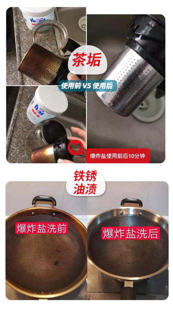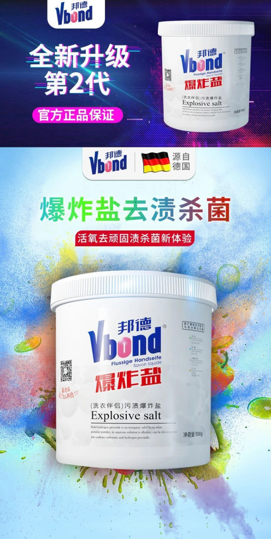 🔸爆炸盐溶于水后,持续释放出大量活性氧原子 🔸能在瞬间去除多种顽固性污渍 🔸针对衣服发黄霉斑、油烟物质等顽固污渍 🔸都能轻松应对一键清除