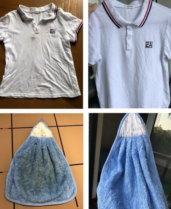 睡觉前用60摄氏度的温水将产品溶解,然后将脏衣物浸入一夜,第二天轻轻揉搓,清水冲洗干净就好啦。效果如图所示,真的超级奶思。