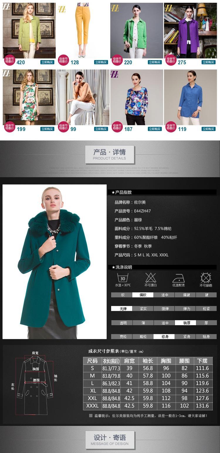 佐尔美冬装纯色修身大码女装单排扣羊毛大衣女毛呢外套冬E54ZD22