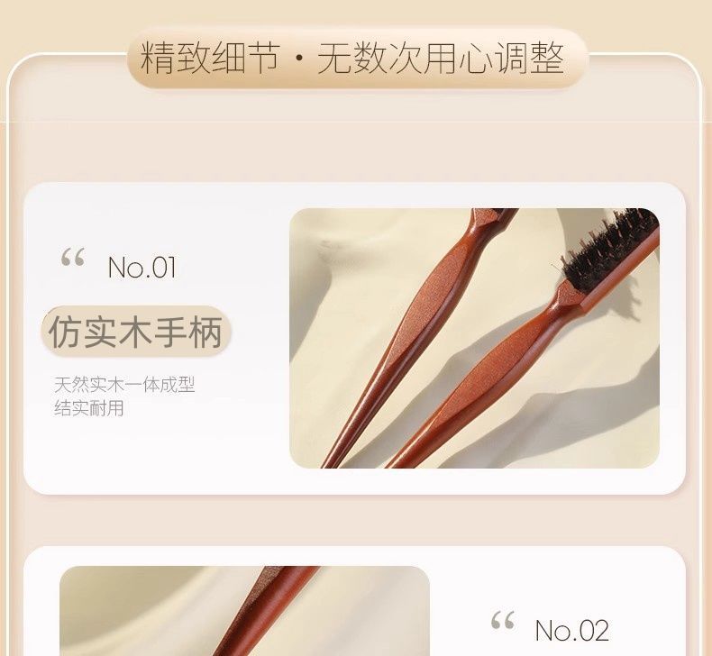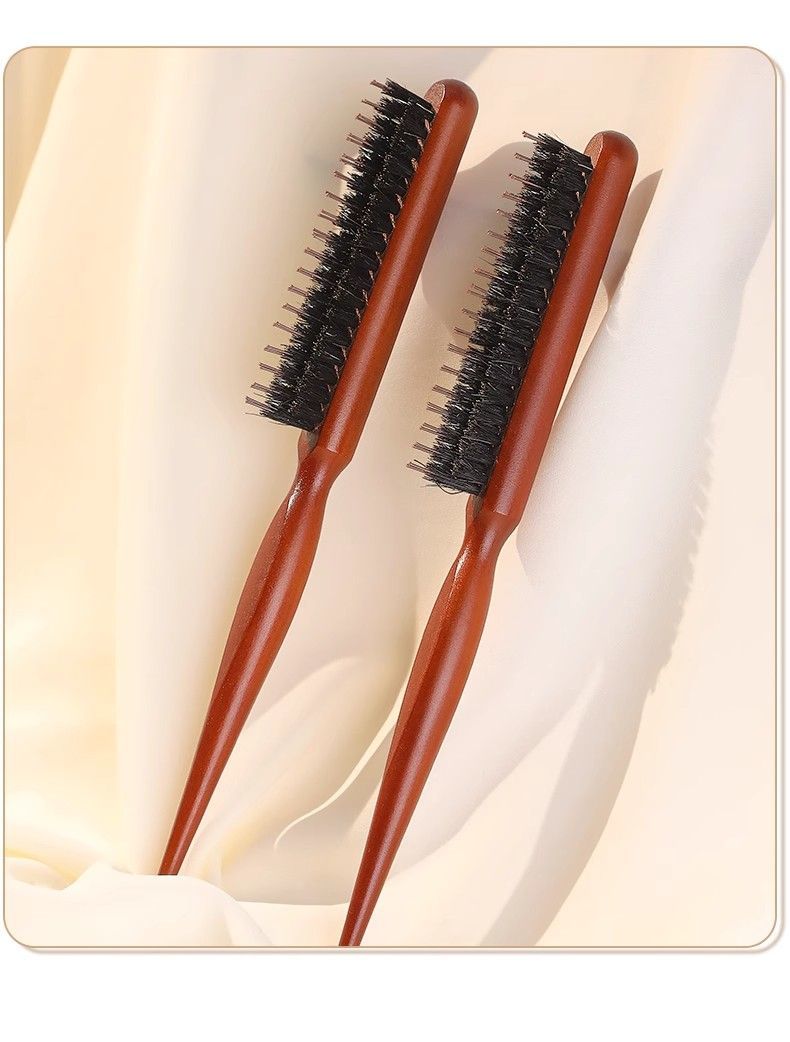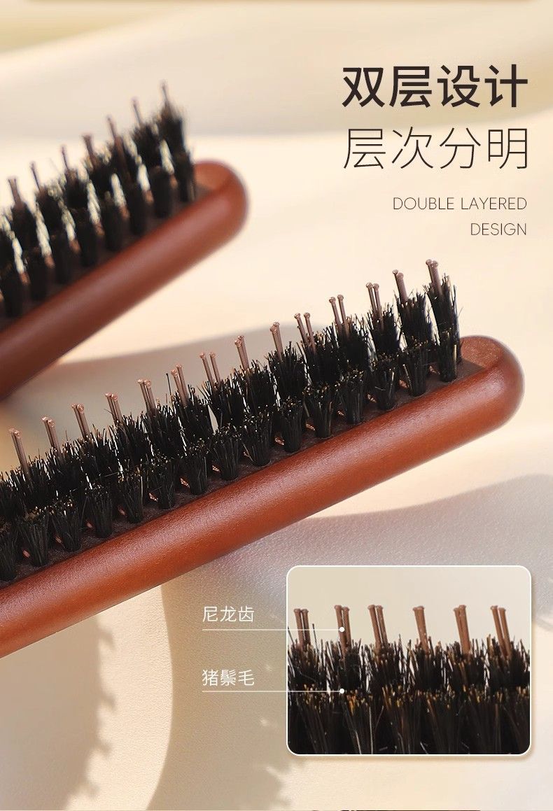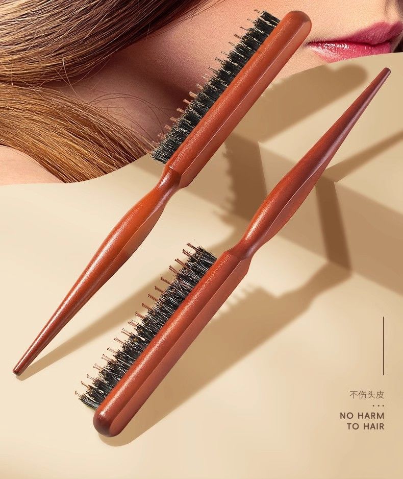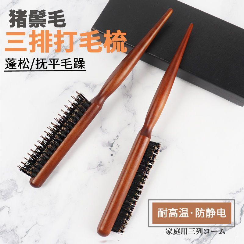 【爆款超低价预售 急单慎拍】猪鬃鬃毛美发晚装梳子蓬松蓬发三排造型尖尾长柄头发美发型棉柔巾