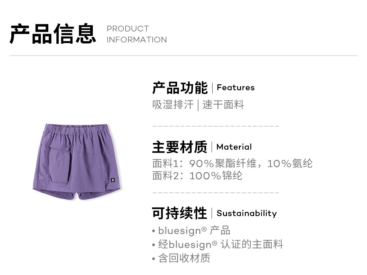 芬兰reima2026春夏新款女孩儿童中童舒适弹力吸湿速干运动短裙裤