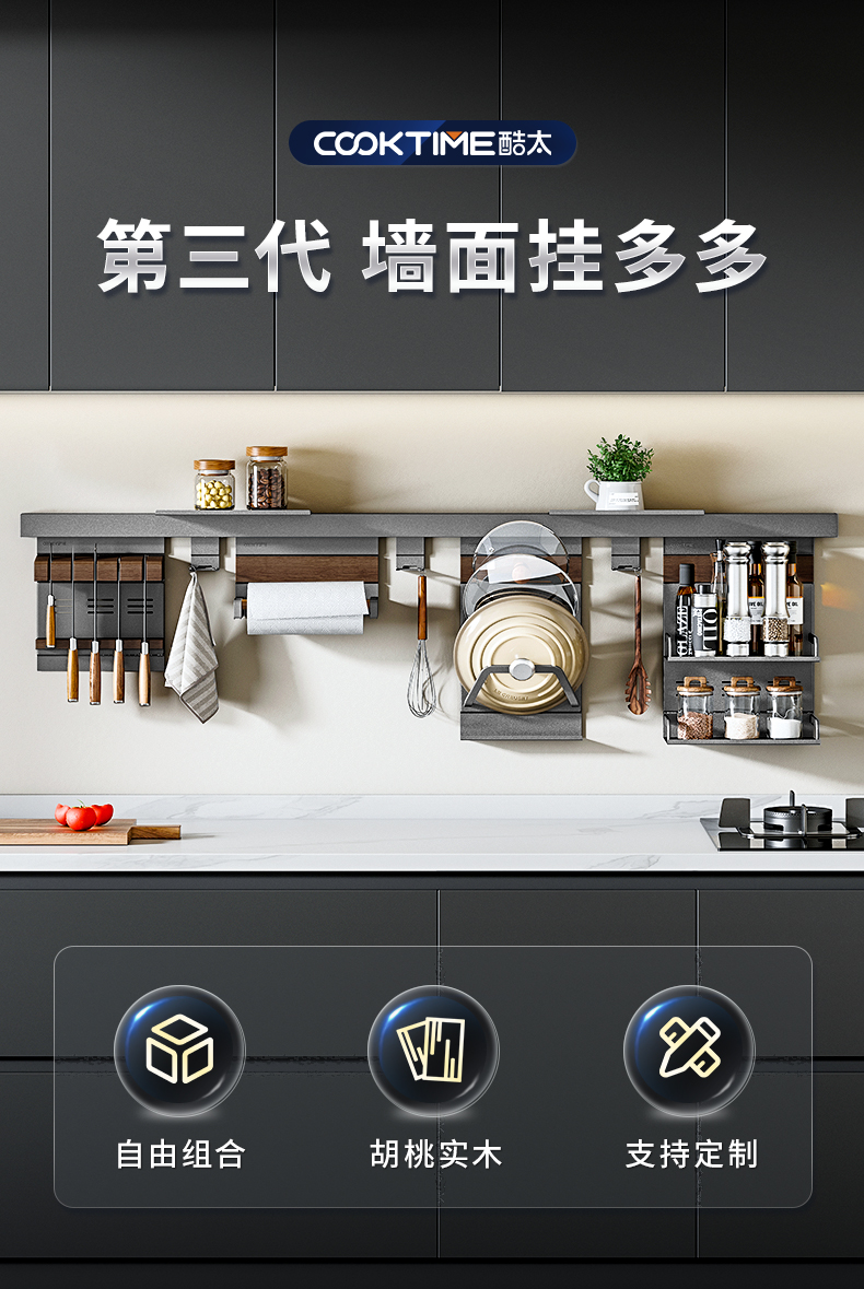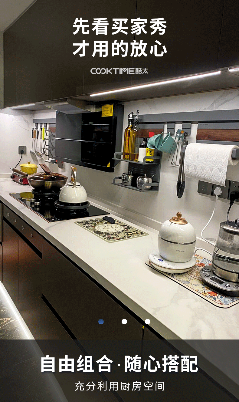 - 酷太坚持8年自主研发,已获得专利证书130项,拥有一套领先市场的厨房收纳系统,为千万中国家庭解决厨房脏乱差,缔造厨房新生活。