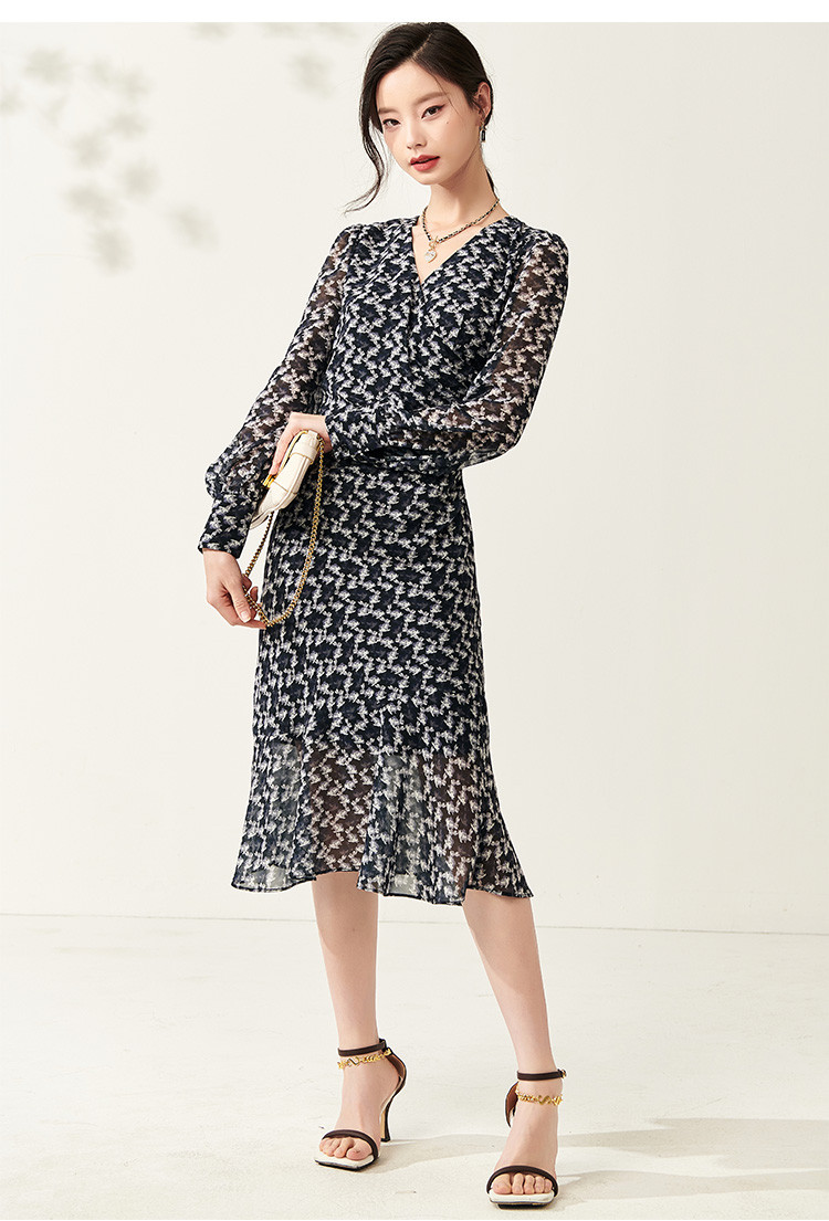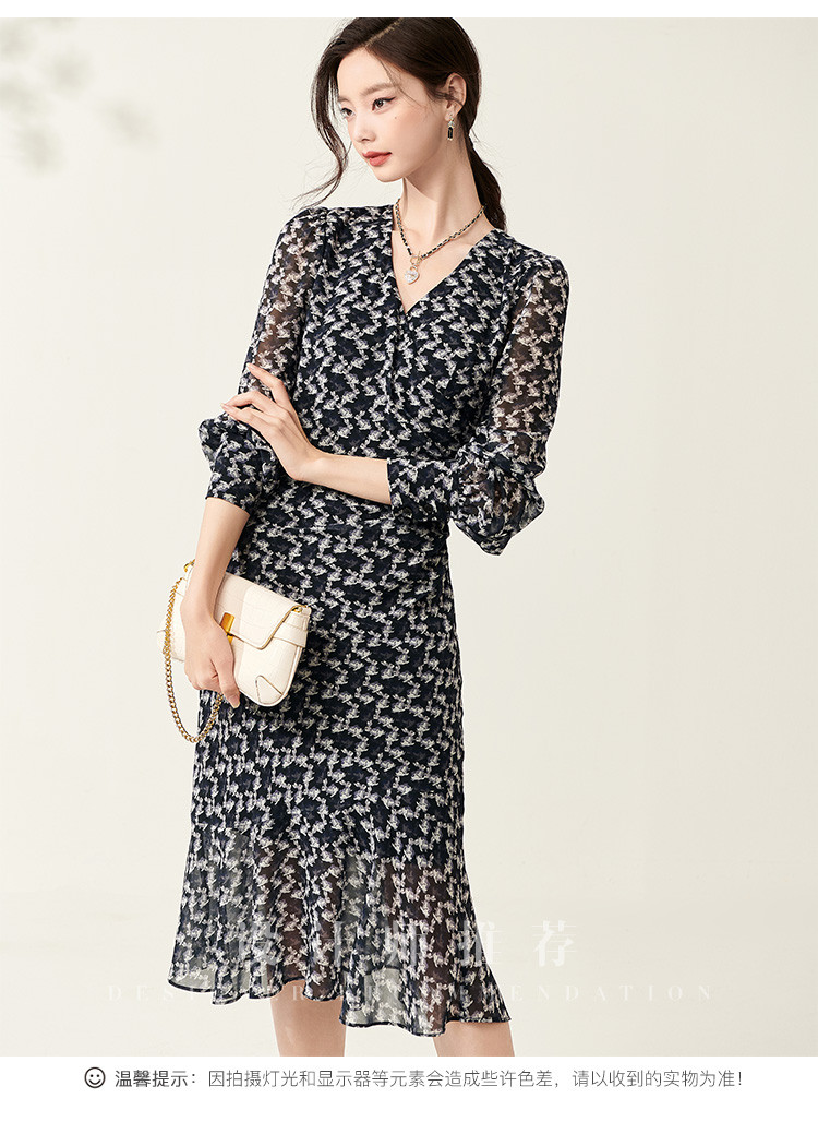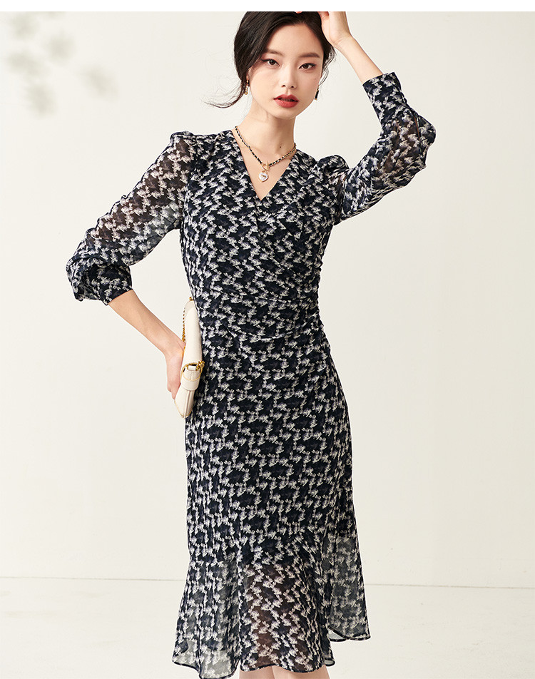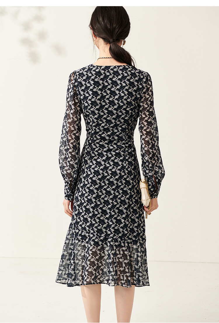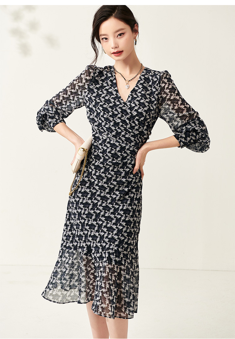 剩S/M/L/XL 芳外【纺纱兔年印花雪纺裙】2025春季新款轻薄微透鱼尾裙