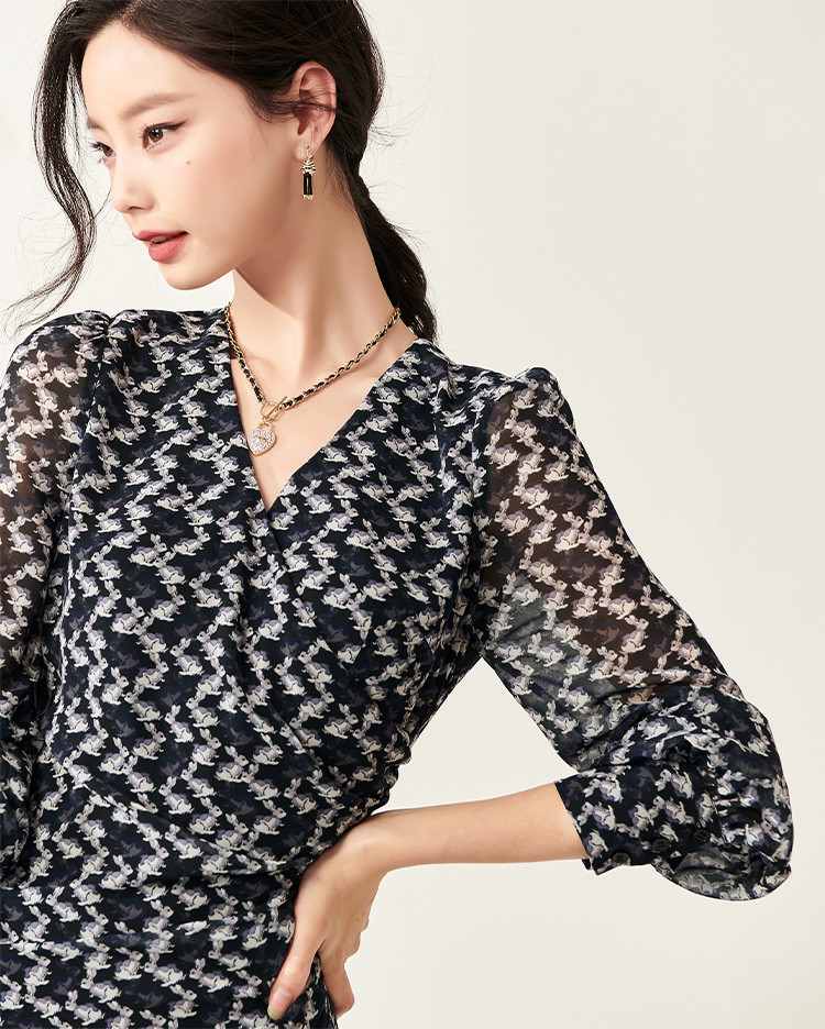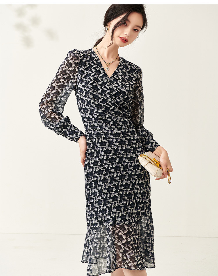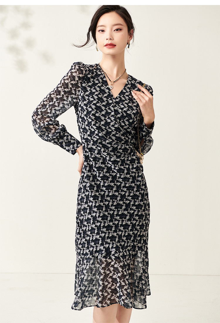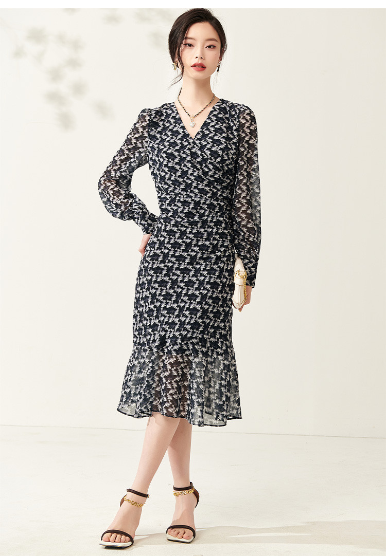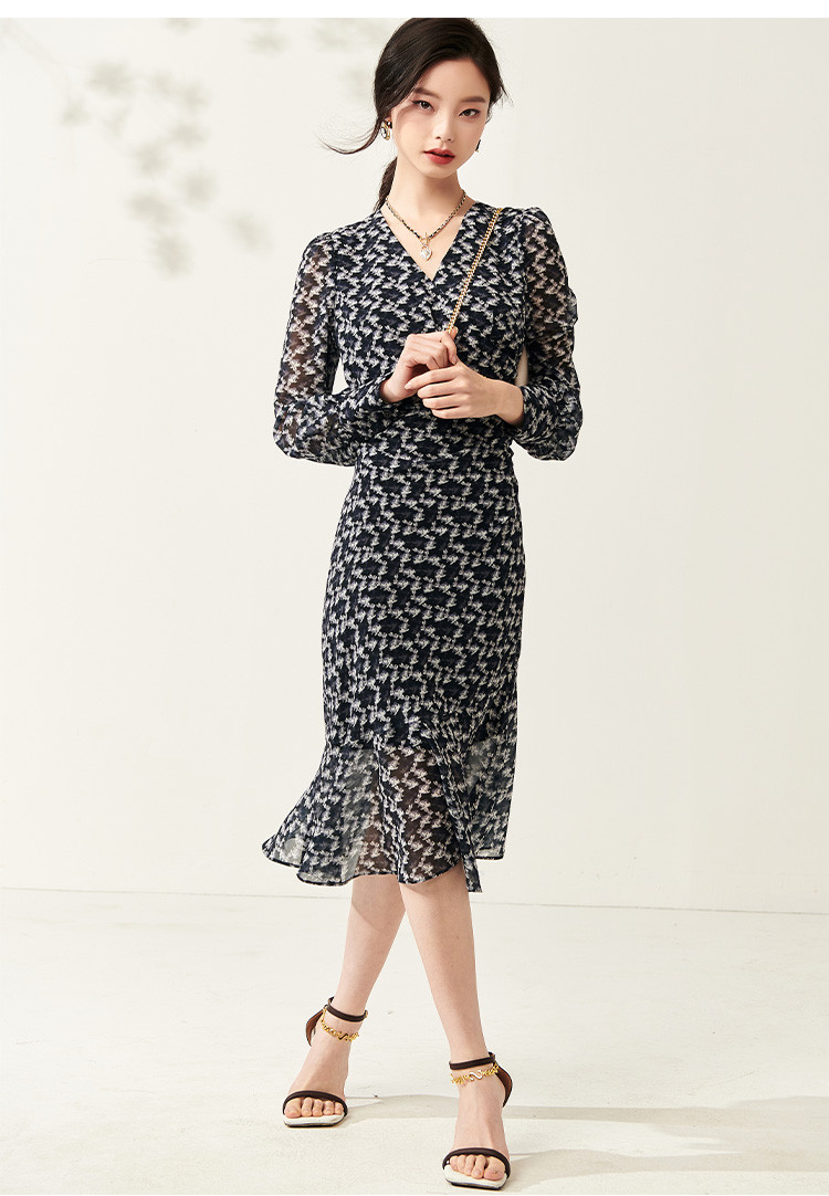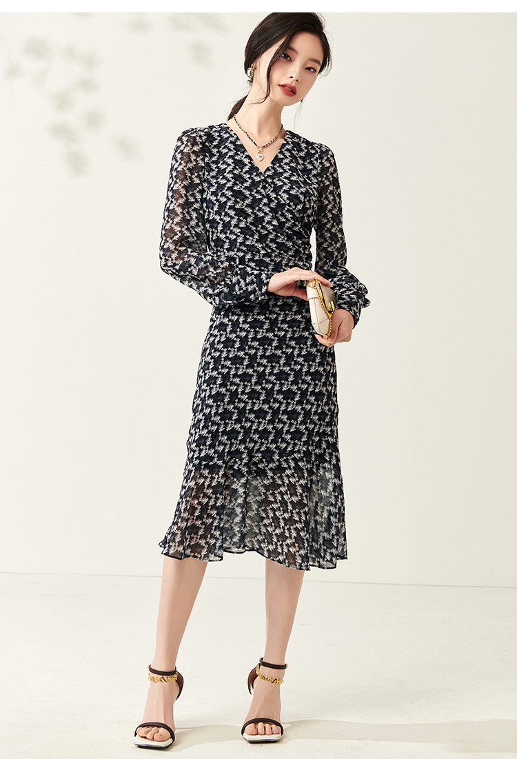 剩S/M/L/XL 芳外【纺纱兔年印花雪纺裙】2025春季新款轻薄微透鱼尾裙