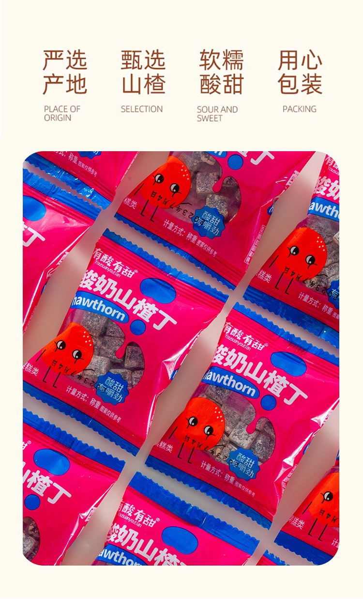 【咬下软糯酸甜!酸奶山楂丁】网红酸奶山楂丁零食山楂果脯独立包装山楂方块健康