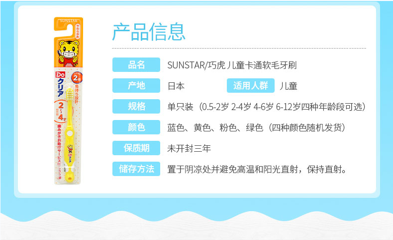 2支|【一般贸易中文标】日本Sunstar巧虎牙刷Do clear软毛牙刷6个月起